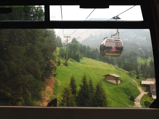 It took about 10 seconds to forget I’d just spent my life savings because the journey to Seceda was epic. The climb requires two cable cars: the first from Ortisei to Furnes, which is 2,500 meters in length, with a vertical drop of 450 meters, followed by a second larger, more impressive car from Furnes to Seceda, which is slightly less distance (2,050 meters) but dangles over a vertical drop of 700 meters. It was a windy day, and as the cable car creaked and swayed, I couldn’t help thinking this would be a living nightmare for someone afraid of heights. I’ll concede that my legs felt a little wobbly at times.