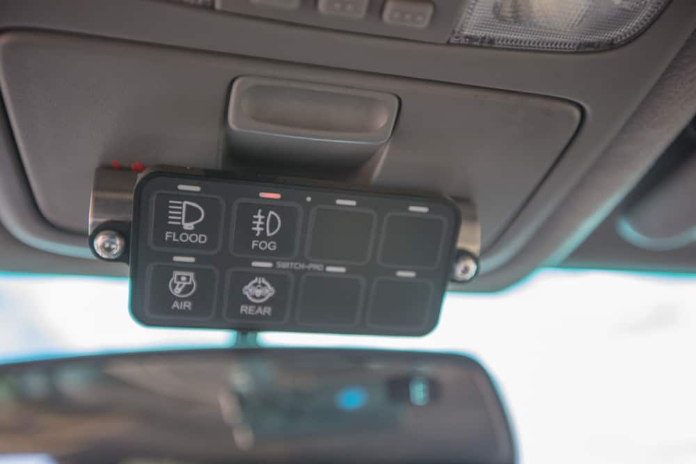 After the installation of Rigid D series fog lights, ARB Intensity driving lights, and additional USB and 12-volt outlets, the vehicle needed a wiring upgrade. For this Dustin turned to Slee Off-Road for a rewire using military grade hardware. Once completed, they installed a Switch Pro panel to control the vehicle’s various accessories.