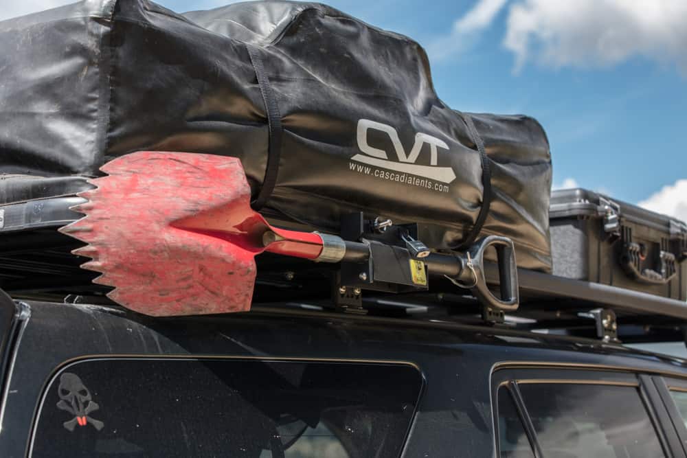 As with any build, there are always a number of other miscellaneous additions. Dustin’s 4Runner also includes Pelican cases mounted to the K9 rack, Cover King tactical seat covers, a Raingler net, Crazy Beaver shovel, Blue Ridge Overland 4Runner attic, Hi-lift jack, and a set of four Maxtrax.