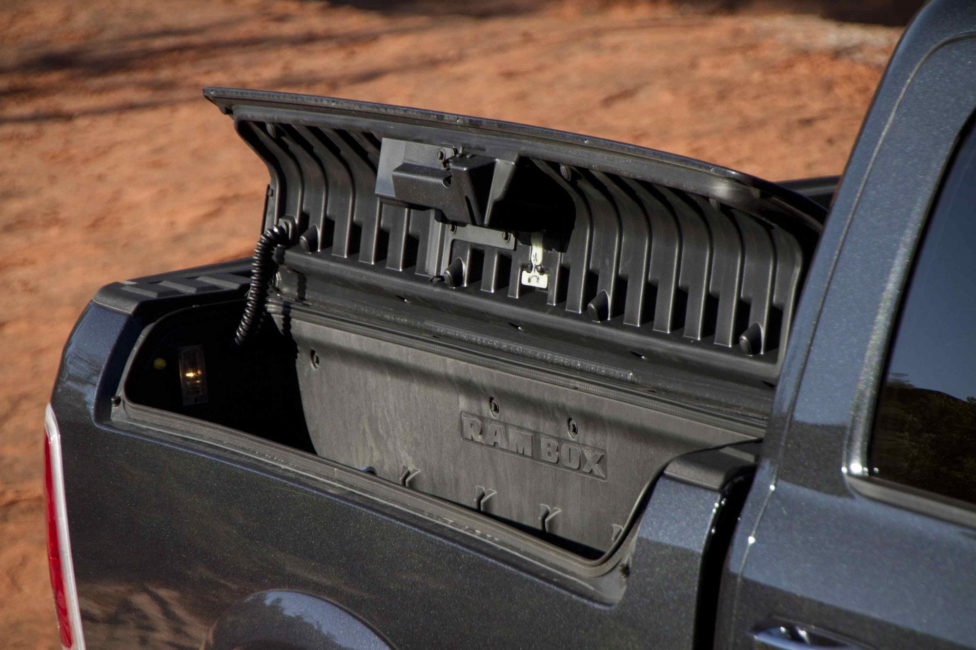 From behind the wheel, driver ergonomics are fitting for a full-size truck. Controls are at arm’s reach; the seats are comfortable and hug your backside as they should. The center console provides plenty of room for maps and personal items, and there are power points for charging phones. I will say that there is a lot of real estate between driver and bumper, as well as behind the cab. I found the tailgate-mounted backup camera invaluable when backing on the trail. Other mindful bits of standard equipment and optional equipment includes Ram Boxes on each side of the bed, touch-screen navigation and media center, Uconnect Web WiFi, and all-weather floor mats. Ram also offers an optional dual-alternator system, which replaces the standard 180-amp alternator with 160- and 220-amp units—redundancy is never a bad thing in the backcountry.