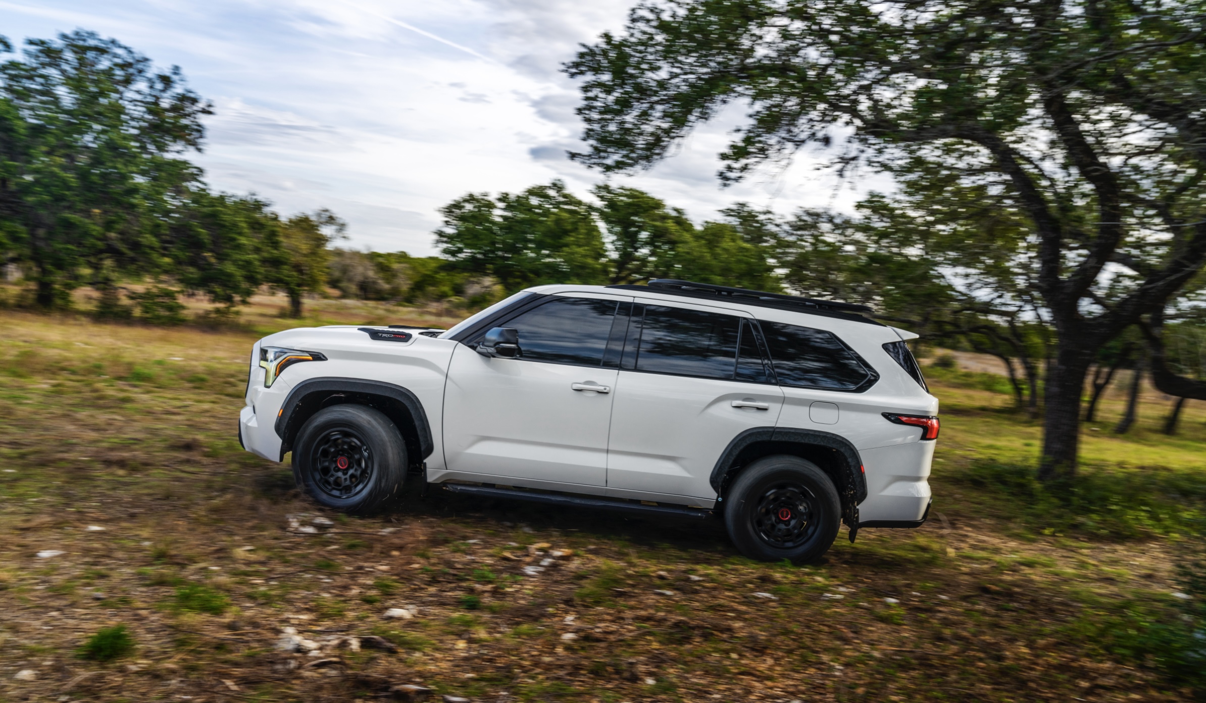 The rear suspension is a long-travel 5-link, with coil springs and a (YES!) driver-selectable locking rear differential. This change alone significantly improves capability, but is also complemented by the excellent multi-terrain select, which will manage any wheel spin that may occur in the front. Crawl Control is also carried over from the Tundra and LX600, which in our testing is the best version of this yet, and proves to be particularly useful (and better than a driver can replicate) on steep, loose descents. It will be curious if turn assist also makes the cut. Toyota finishes it off with the TRD skid plate package, which is fully functional, and appropriate for off-road use. The TRD Pro is propelled by the excellent iForce Max power train, which incorporates a hybrid electric module coupled to the 3.5-liter twin turbo V6. This provides for seamless power delivery of the 437 horsepower and 583 pound-feet of torque. I suspect the fuel economy will be similar to the LX600 in the low 20s mpg combined and around 23-24 on the highway.