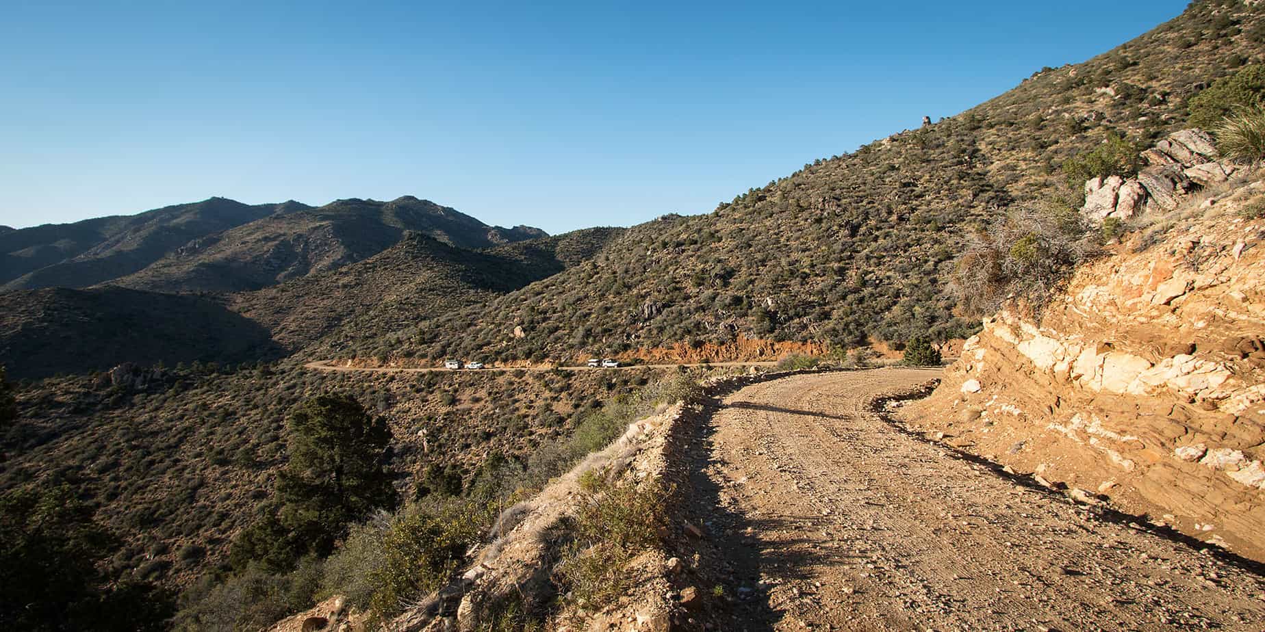 Simultaneously in the way and out of the way, a treasure trove of abandoned mining sites, springs, camps and panoramic views across three states hides in plain sight along the CANAMEX Corridor only a few hours outside Phoenix and Las Vegas. Like most of Arizona’s “sky islands”, the juniper-covered Cerbats rise thousands of feet above the baking desert floor to reach fresh, cool mile-high air. Thanks to reliable water, the mountains are home to a variety of wildlife including bighorn sheep, bobcat, and mountain lion. The Cerbat Mountains run northwest from Kingman toward Las Vegas, and are the reason for the long southern loop through Kingman on the Vegas-Phoenix run.