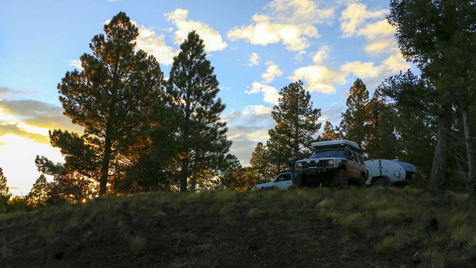 The muddy pass marked the end of FR-300. We had reached pavement once more, and though the Rim Road was finished, our adventure was not. It was time to seek out a camp near Greer Arizona, our last destination for the weekend. None of us are usually excited about driving tarmac, but the views were so spectacular that evening we couldn’t complain. We had now reached a high enough elevation to see the colors begin to change in the trees, and despite a lack of diversity, the vibrant yellows clashing with green was a dazzling spectacle all its own.