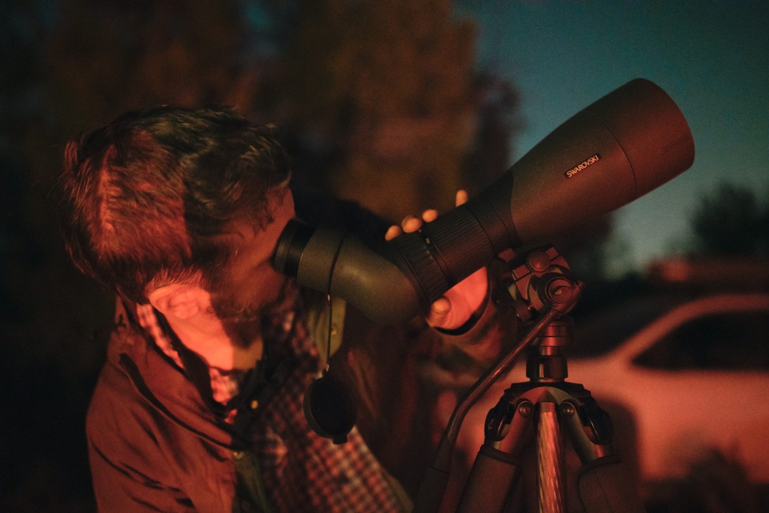 It takes me a few seconds to adjust the diopter to account for the astigmatism in my right eye, but once I get the focus correct, I can see them. There are 20 or more raptors of varying sizes, circling together in a thermal, high above the sagebrush and juniper. It’s amazing how sharp they are through the eyepieces, almost like I’m right there, flying with them. “How did you know they were there,” I ask, still glancing at the phenomenon. “There are a lot of interesting things to see,” he says, “you just have to keep your eyes and ears open.”