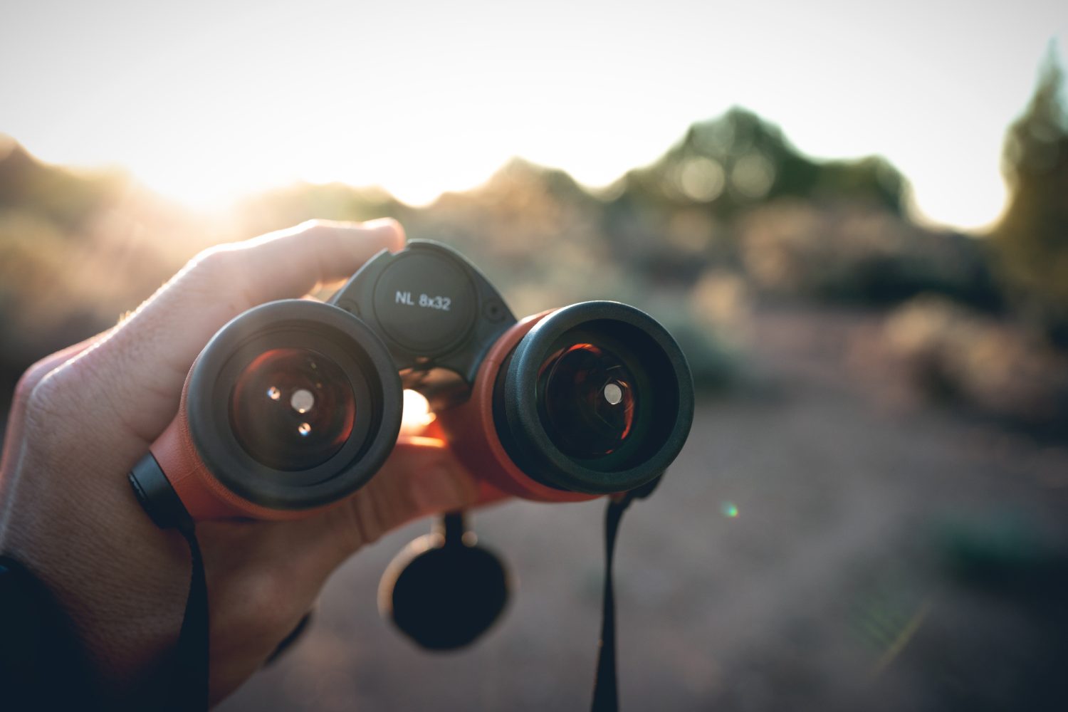 I see Ben glancing through his trail-worn binoculars toward a blank horizon, and I’m intrigued. We’ve stopped on the trail again, this time to water some shrubs and grab a snack. Dried plant life crunches under my feet as I approach Ben, but before I can ask, he passes the binoculars to me and gestures in the direction he was looking. “Hawks and vultures migrating,” he announces. Ben works for Swarovski Optik. He’s an avid birder, and he’s been kind enough to bring some extra pairs of the Austrian binoculars along on the trail for us to use.