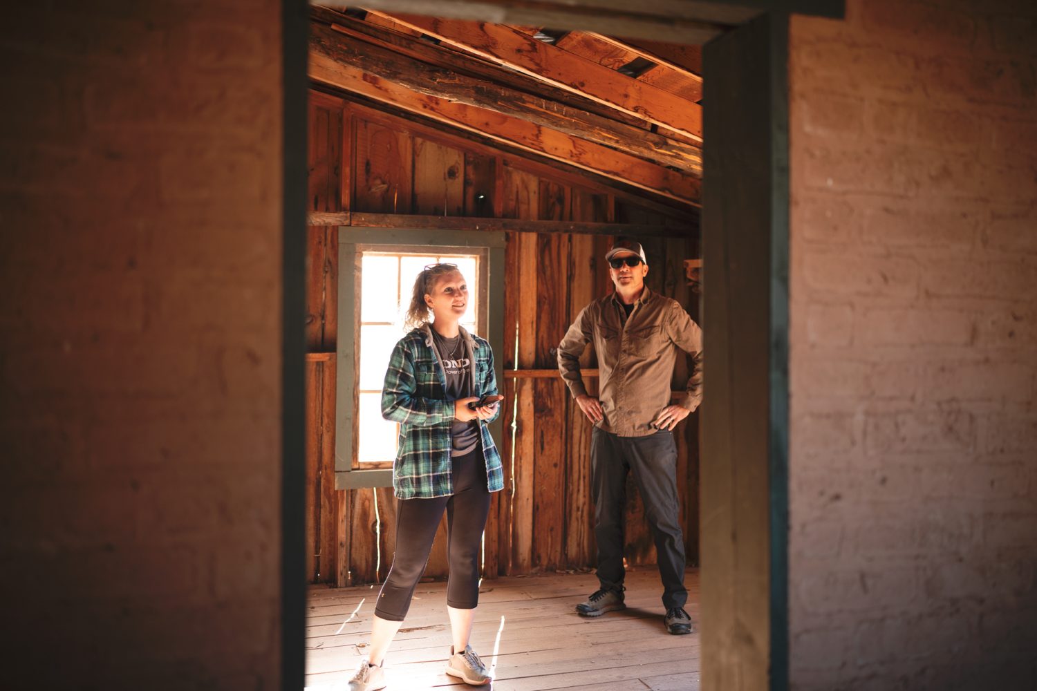 The rustic pioneer buildings are exactly what you’d imagine: unfinished sun-baked cottonwood boards, the edges of which are weathered and curved outward from a century of exposure. Ducking through low doorways, I picture the humans that lived here and how they must have been smaller back then, whittled down to their essential form by this harsh desert. That or they were just content to have a roof (of any height) over their heads. High ceilings require more effort to heat anyway.