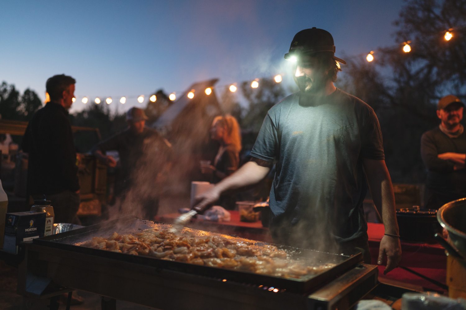 Dinner prep on the flattop grill. Overlanding affords you the ability to bring bulky items like this into the backcountry.
