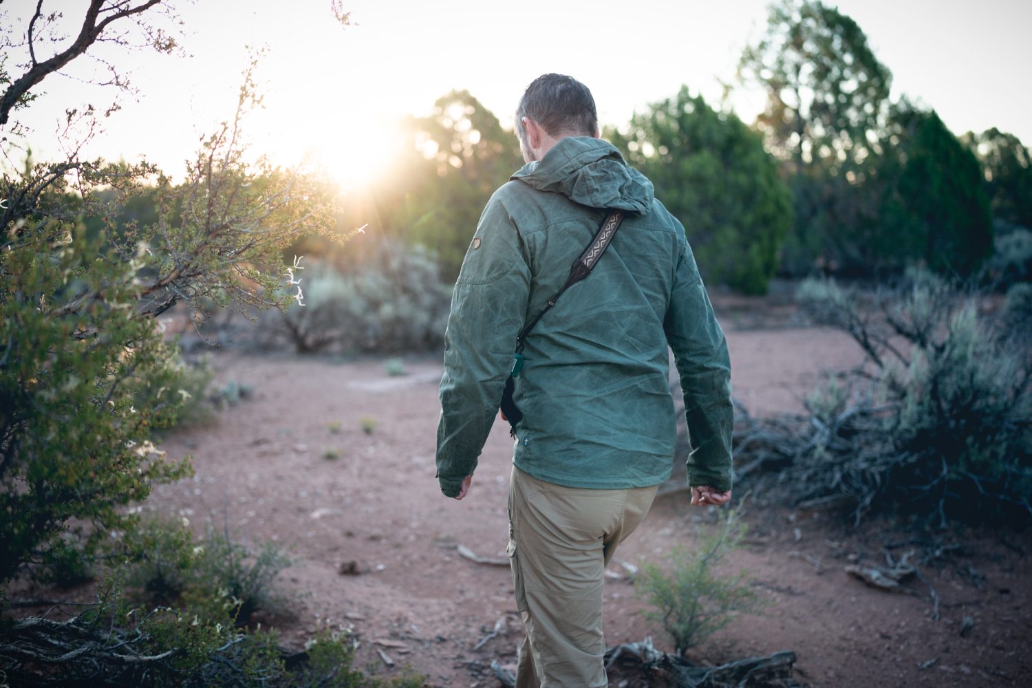 It’s 6:00 a.m., and the scents of sage and campfire, as well as early morning’s pale-blue pallet, are draped like a blanket across the high desert. Golden yellow rays trickle through the surrounding junipers creating a dappled patchwork on the chilled sand. I don’t dare disturb this calmness.