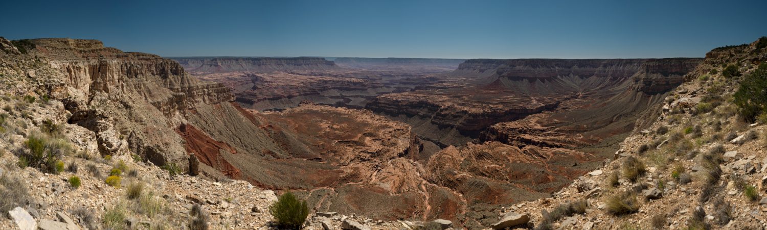 We bumble our way down the trail, winding through tight stands of ancient juniper and pinion before getting our first glimpse of the Grand Canyon. It’s not the first time I’ve seen it myself, but I relive that original sense of awe in the eyes of our other group members. I struggle to put words to the feelings I experience in the canyon’s presence. My gaze rolls over the rim and down the vermilion walls to the billion-year-old basement rocks below. At the heart of it all, the distant muddy torrent carves its way deeper into the Earth’s crust.