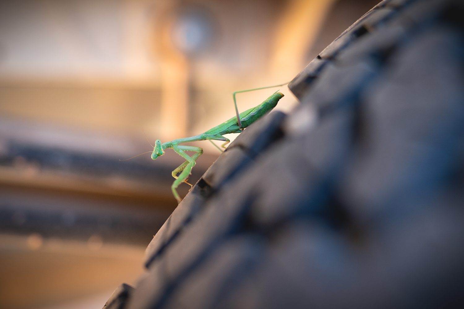 I carefully removed this hitchhiker from my tire before continuing the drive.