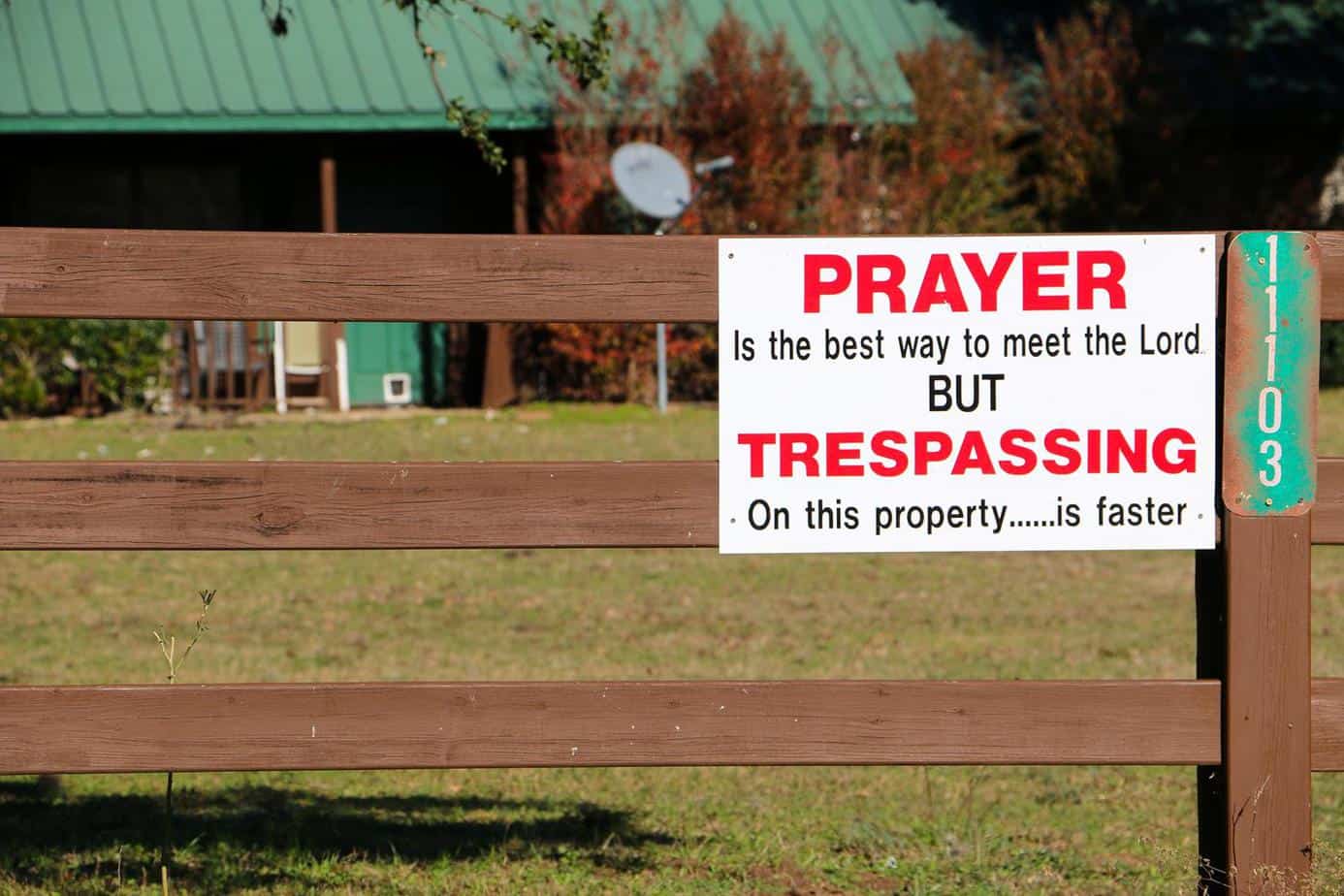 The bull was less than pleased to see me approaching the edge of his fence. He snorted as I slowly knelt for the photo, and then proceeded to stare disapprovingly as my shutter clicked once and then twice. Lowering the camera to read the sign once more, a smile crept across my face. Prayer is the best way to meet the Lord, but trespassing on this property is faster… classic.