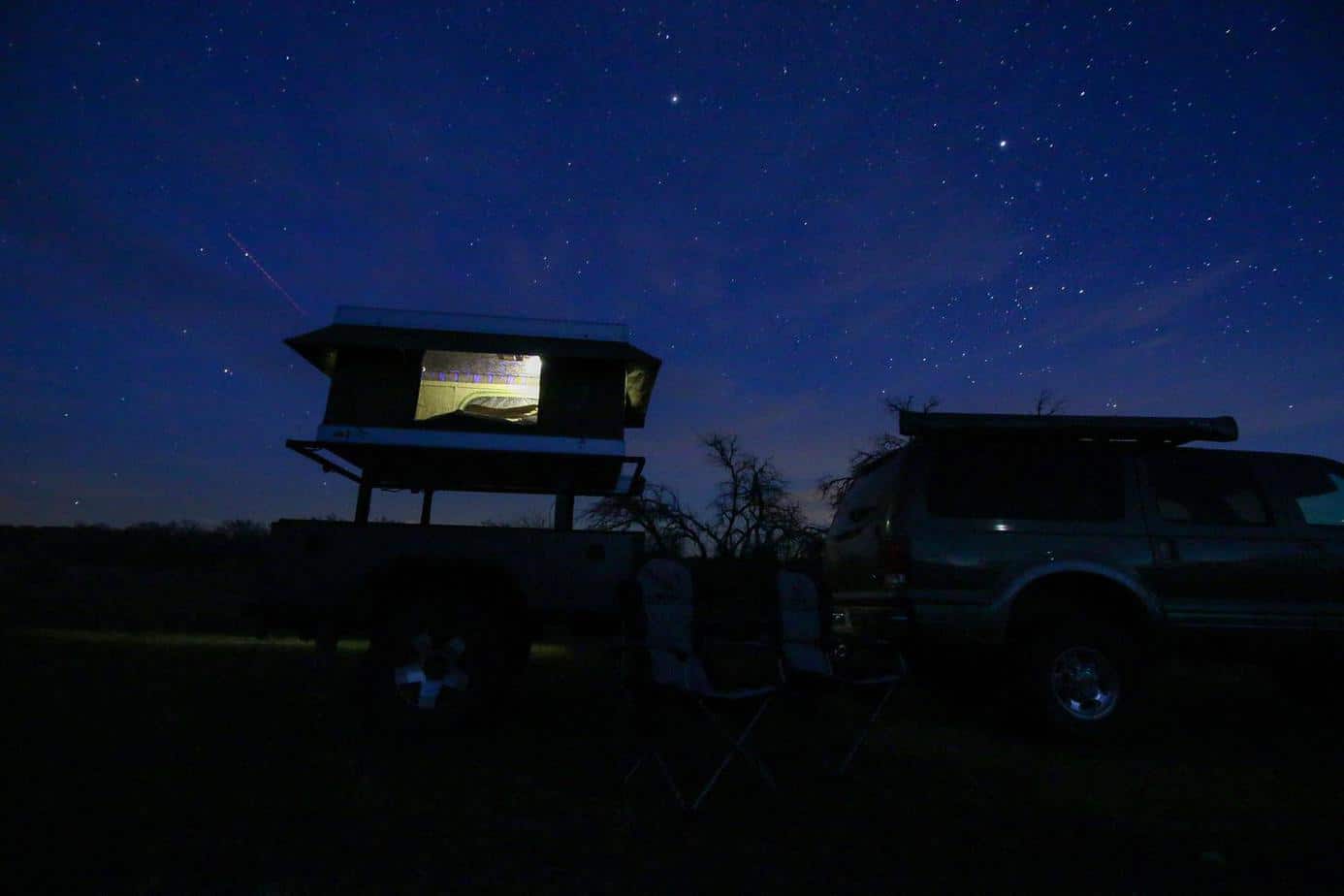 With dinner complete and the sun sinking low, we zipped up our Foxwing and opened the BunduTec for the night. The evening colors in the sky were amazing, and our camp behind the crest of a hill gave us the perfect place to watch the show.