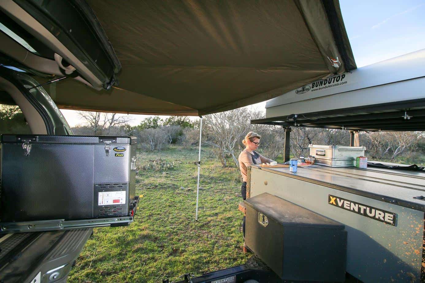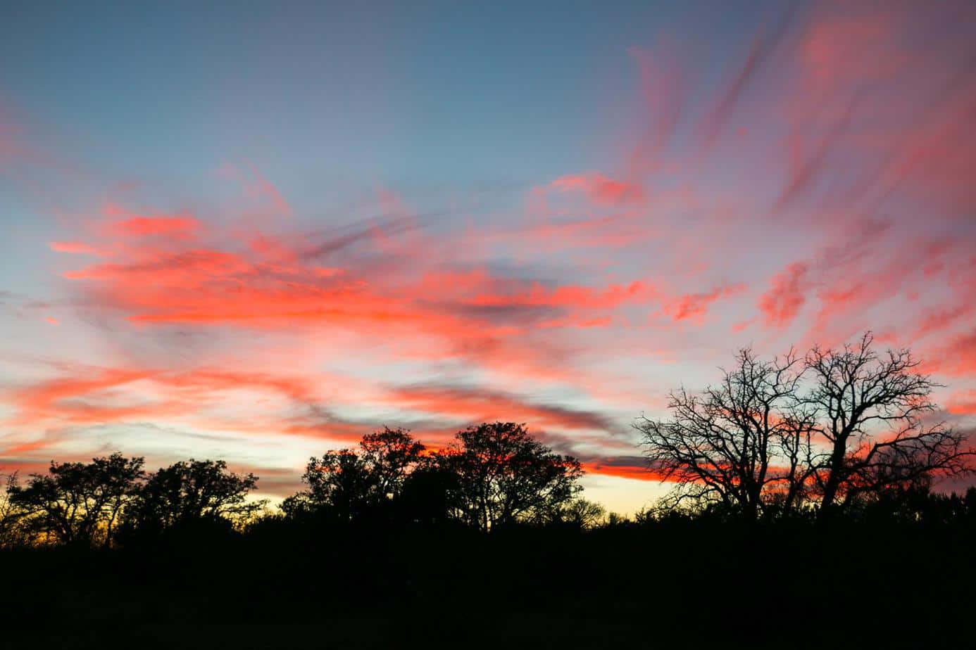 With dinner complete and the sun sinking low, we zipped up our Foxwing and opened the BunduTec for the night. The evening colors in the sky were amazing, and our camp behind the crest of a hill gave us the perfect place to watch the show.