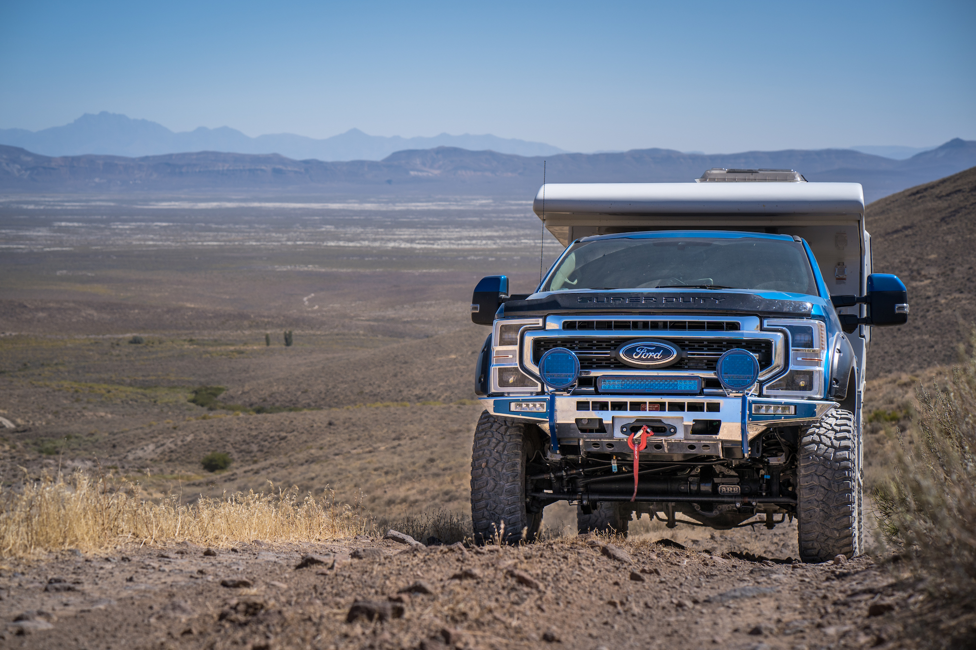 The vehicle we used for this adventure is the Ford F-350 7.3L V8 with the fitment of a custom Nimbl camper. For our review of this model, you can watch it on Youtube here.