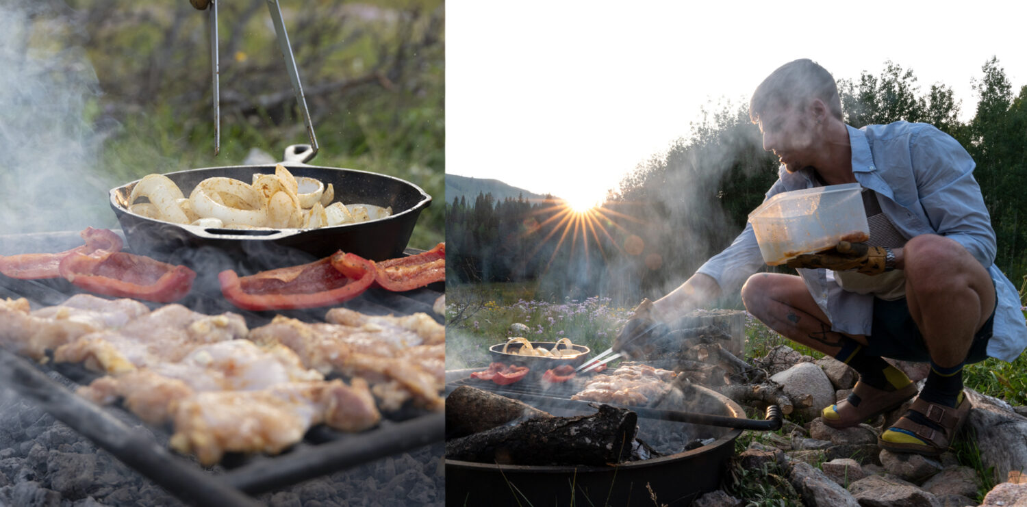 Having a full kitchen in the Airstream makes it easier to prep meals. In this case, we prepared everything inside and cooked our dinner over the campfire to cut down on clean up.