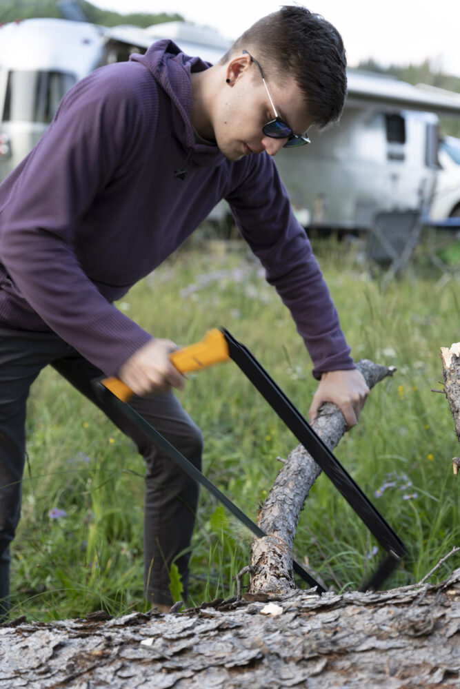 Bring the Right Tools – Traveling in an Airstream affords us a good amount of storage space, allowing us to bring more specialized tools that make camping tasks easier. We use cast-iron cookware because of its versatility on the stove or campfire. And speaking of campfires, we have a hatchet and folding saw on hand for processing firewood that we find. Leather gloves are also highly recommended for protecting your hands when performing camp tasks.