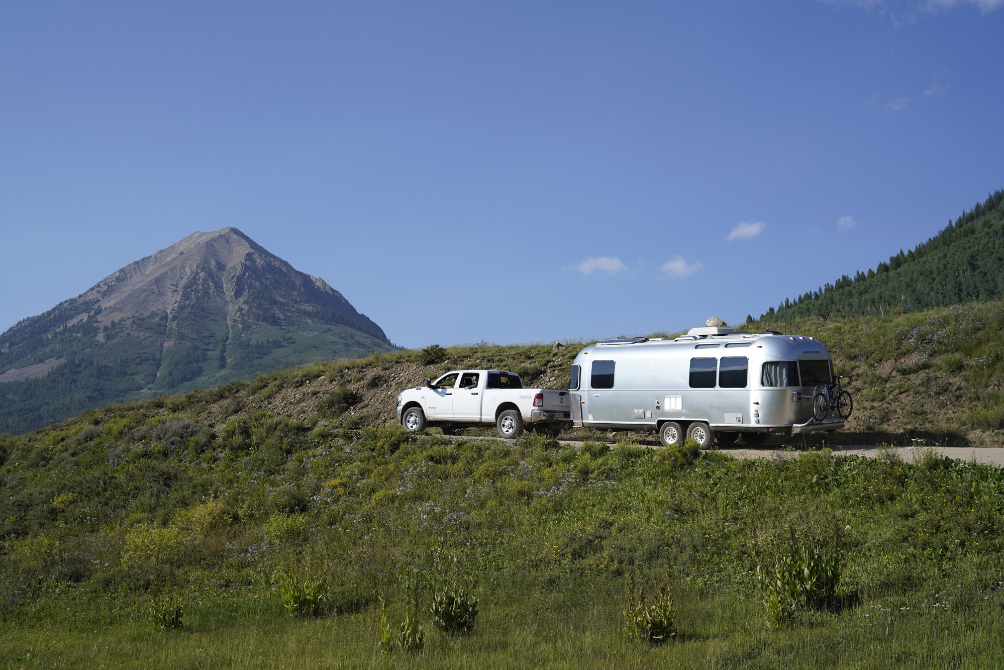 The ideal Airstream campsite includes beautiful views, flat ground, and a relatively easy turnaround. Crested Butte, Colorado.