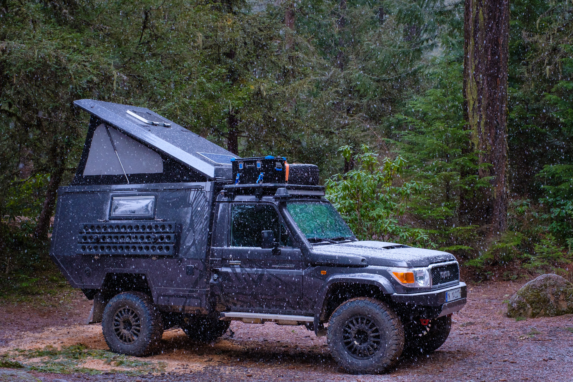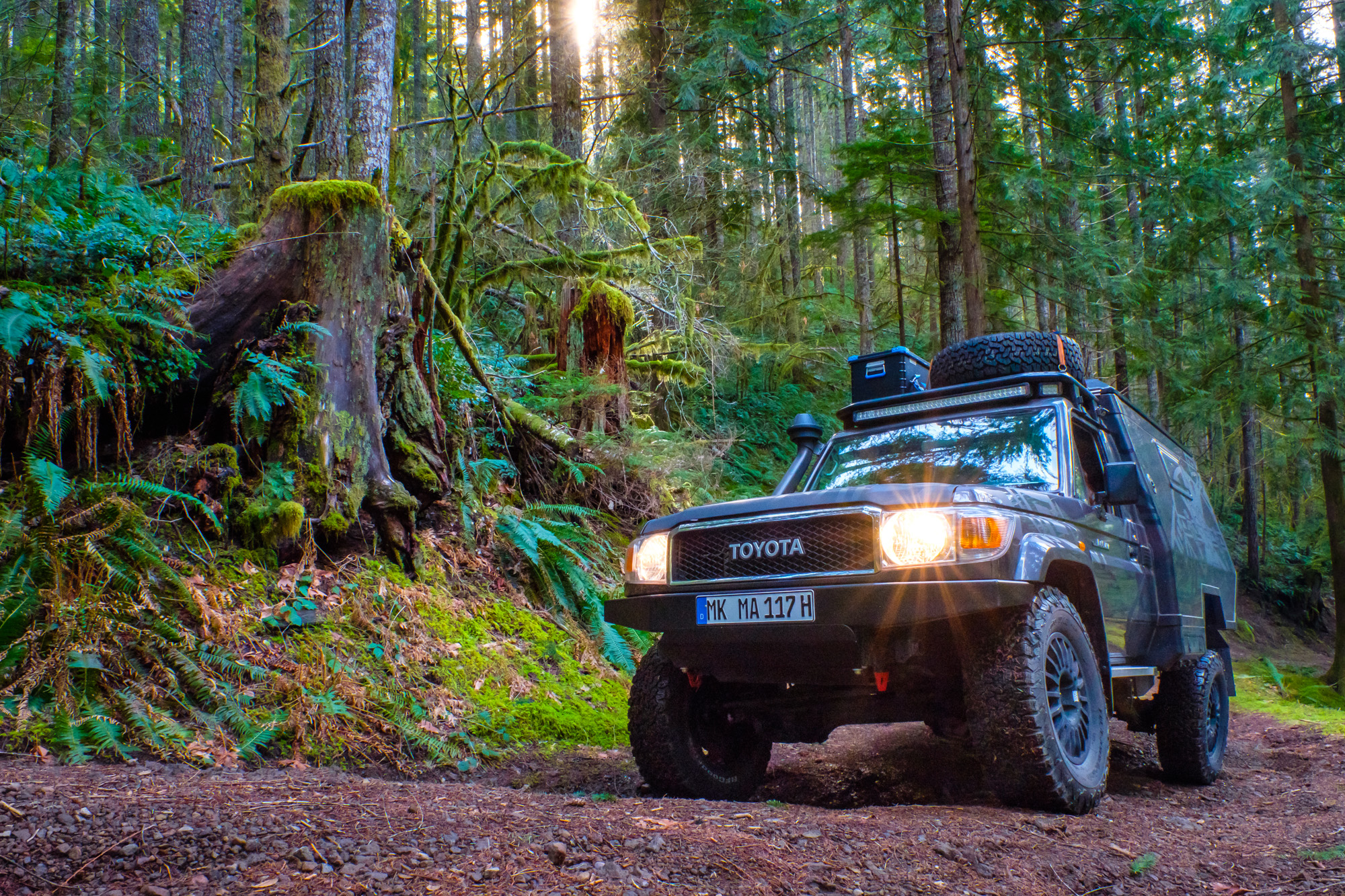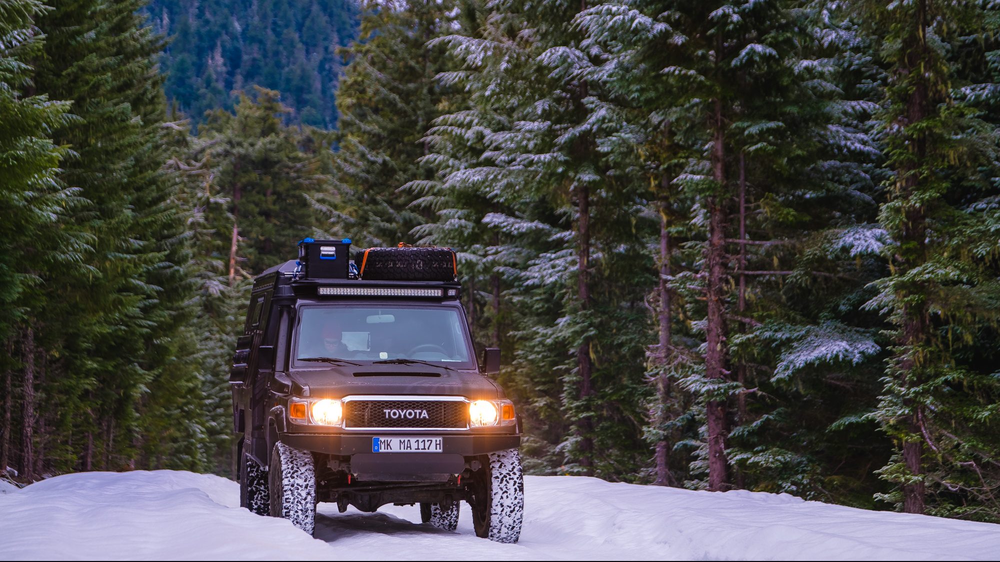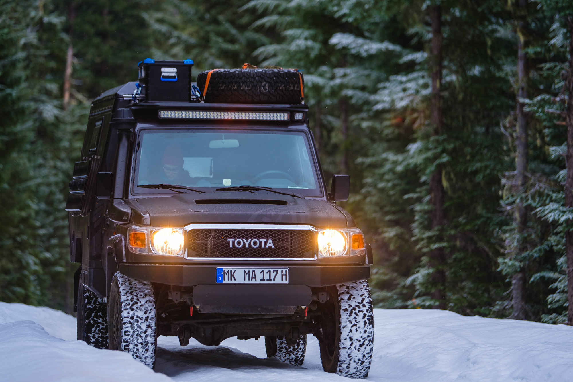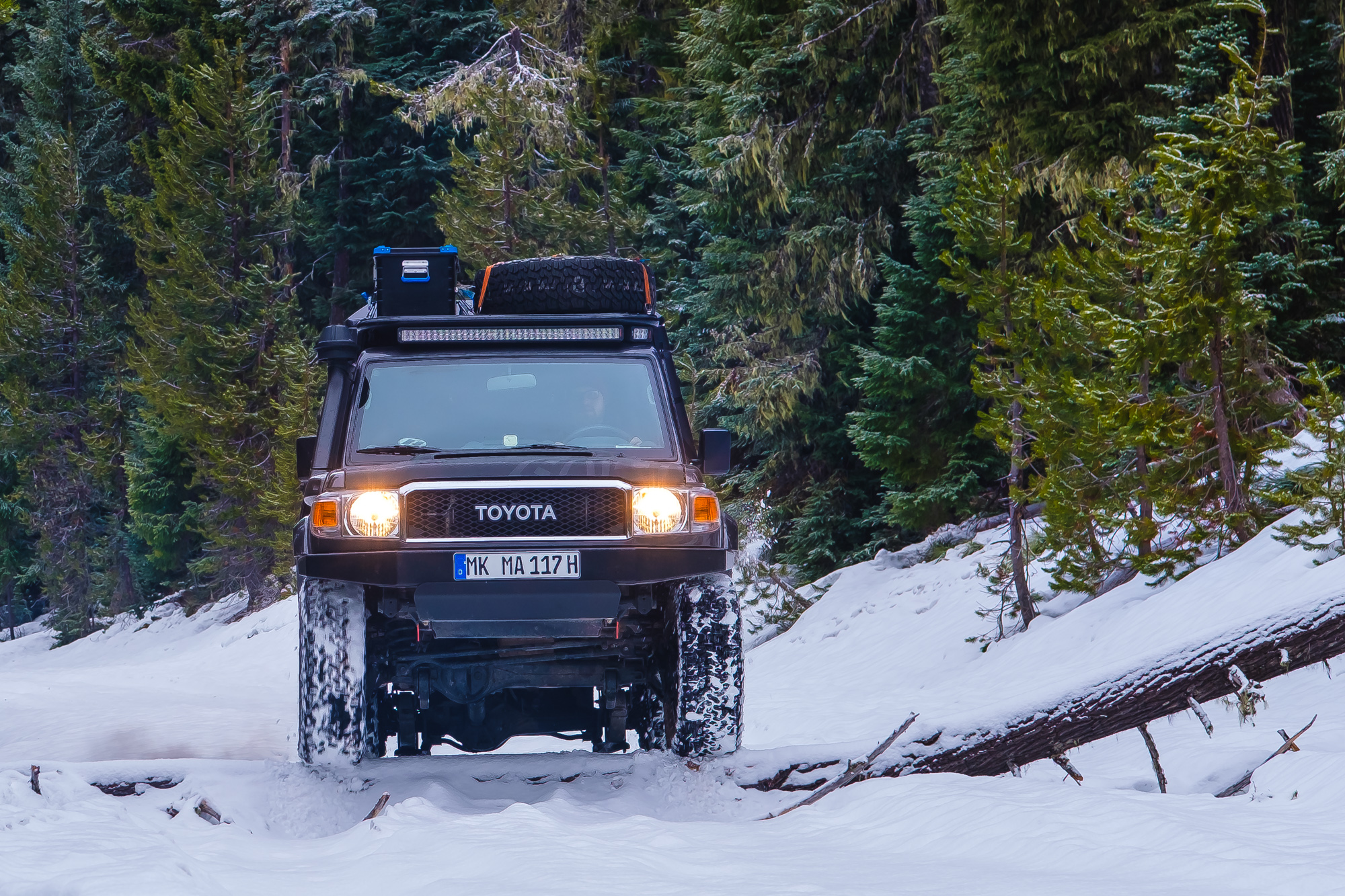 The morning was gray, and the damp Oregon cold soaked through my sweatshirt as my girlfriend and I loaded the last bags into the Land Cruiser. It had taken months of changed timelines and rearranged travel plans to get our hands on this Maltec camper, but it had all finally come together. The plan was to reach some of the state’s more remote mountain hot springs by driving in as far as possible, then leaving the Cruiser as a base camp, and traveling the rest of the way by snowshoe. The forecasts looked good, and there were now only a few pre-trip inspections standing between us and one heck of a good weekend. I was eager to get on the road, but safety inspections come first. I started with the routine fluid checks, as my back was flaring up after my recent back surgery, and I wanted to delay laying on the concrete as long as possible. Everything looked good though, so I stiffly maneuvered myself below the vehicle to look over the suspension and driveline. It all checked out. We did one final pass over the camp gear Toby from Scheel-Mann USA had loaned us, locked the rear door, and headed for the countryside.