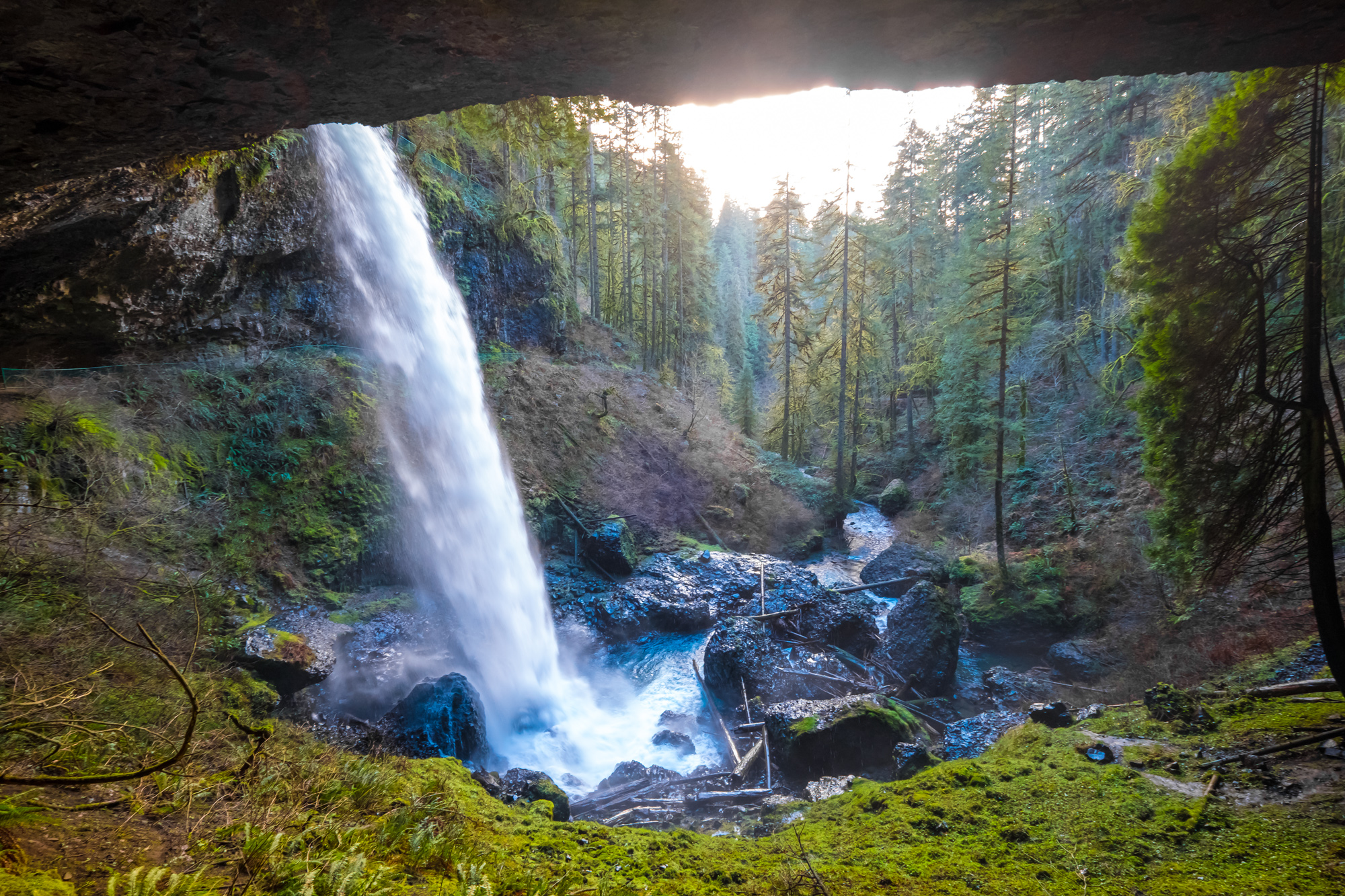 Tunnel Falls is set back in a misty valley amidst creeping vines, thick gnarled trees, and vibrant beds of green moss. As you’d expect from the name, the ground beneath the falls has been tunneled out, so visitors willing to make the muddy trek can sneak behind its roaring curtain for a rare perspective of this natural wonder. It took only a brief hike down a trail worth hiking on its own merits to reach our goal. The sun poured through the clouds above, setting the thundering water aglow as it hammered on the rocks and remains of trees below. As is usually the case, the photos online hadn’t done it justice. I sat beside my girlfriend in awe of this place for some time, until at last we were forced to leave in search of camp.