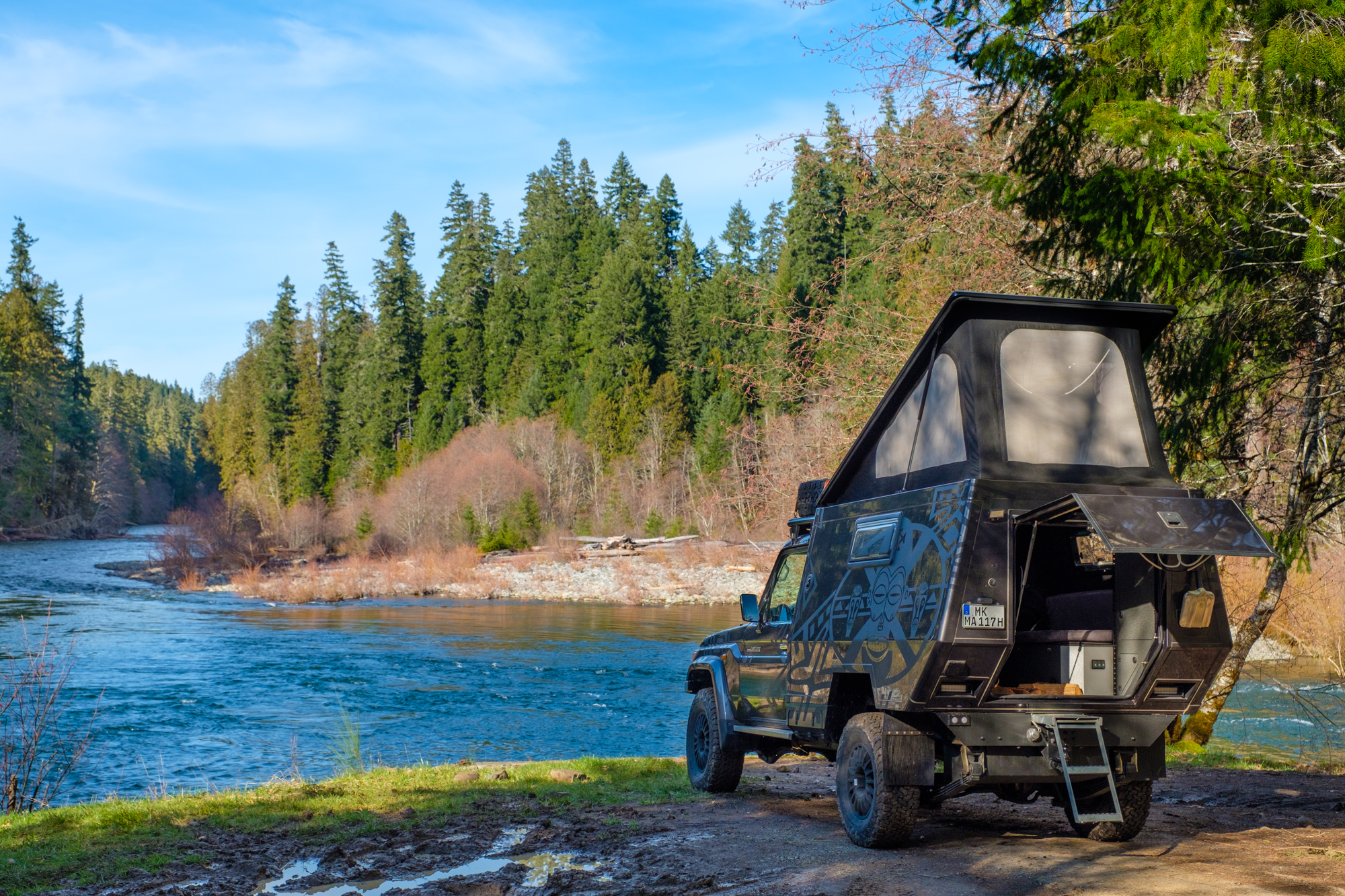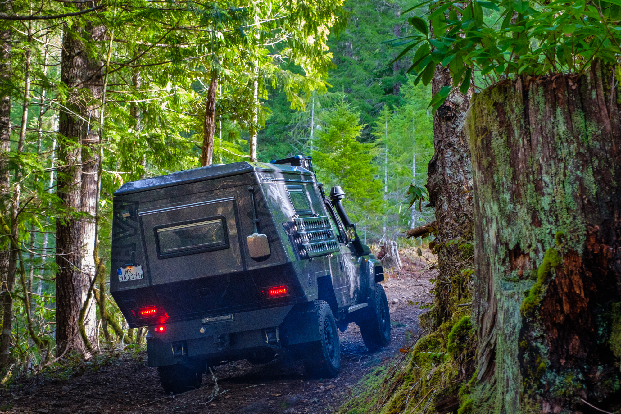 Our first destination was Silver Falls State Park, a serene slice of Oregon filled with quiet valleys, soothing creeks, and rumbling waterfalls. The road leading in was a perfect balance of smooth winding tarmac with tight bends and small bridges. I couldn’t help but roll on the throttle as we entered the turns, shifting through the gears before transitioning into the next corner. The Maltec’s prowess on the pavement was surprising. I knew of course that it’s carbon fiber shell, low center of gravity, and race truck heritage should have given it favorable handling, but I hadn’t expected this. The lack of electronics combined with the solid mechanical throw of each shift felt more like a sporty sedan than a fully functional camper, and I was loving it.