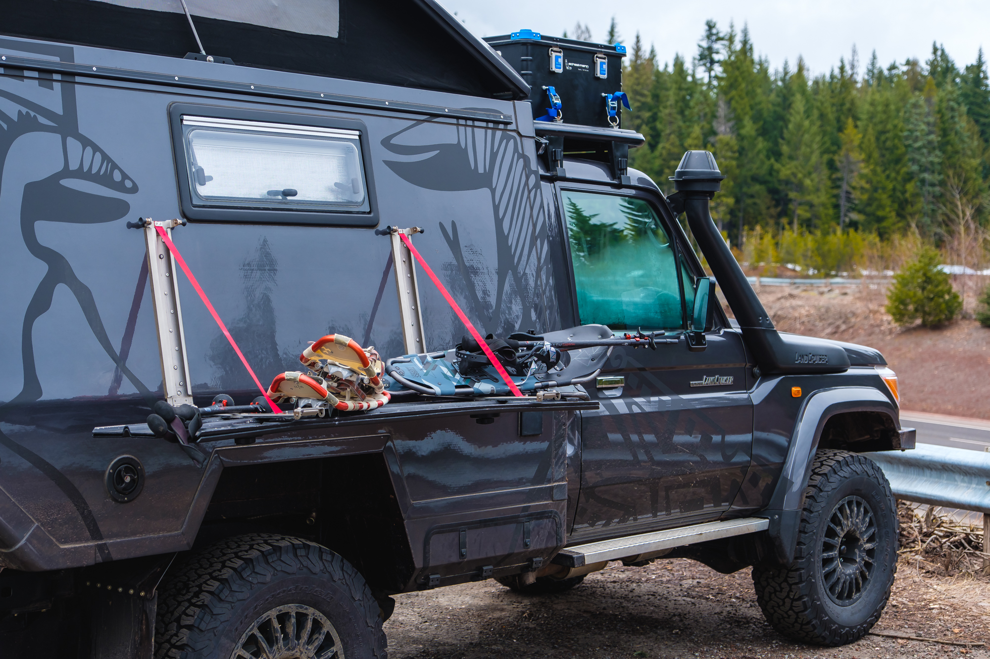 The morning was gray, and the damp Oregon cold soaked through my sweatshirt as my girlfriend and I loaded the last bags into the Land Cruiser. It had taken months of changed timelines and rearranged travel plans to get our hands on this Maltec camper, but it had all finally come together. The plan was to reach some of the state’s more remote mountain hot springs by driving in as far as possible, then leaving the Cruiser as a base camp, and traveling the rest of the way by snowshoe. The forecasts looked good, and there were now only a few pre-trip inspections standing between us and one heck of a good weekend. I was eager to get on the road, but safety inspections come first. I started with the routine fluid checks, as my back was flaring up after my recent back surgery, and I wanted to delay laying on the concrete as long as possible. Everything looked good though, so I stiffly maneuvered myself below the vehicle to look over the suspension and driveline. It all checked out. We did one final pass over the camp gear Toby from Scheel-Mann USA had loaned us, locked the rear door, and headed for the countryside.