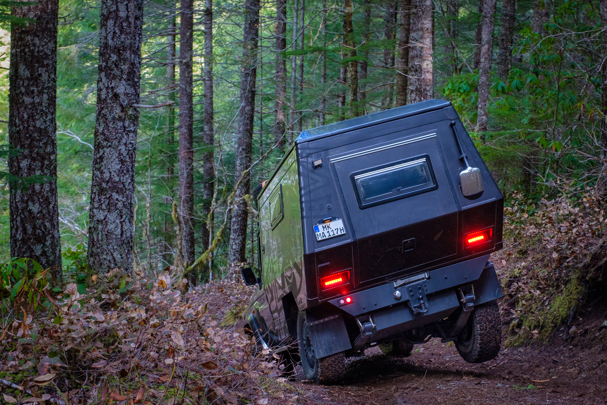 Our first destination was Silver Falls State Park, a serene slice of Oregon filled with quiet valleys, soothing creeks, and rumbling waterfalls. The road leading in was a perfect balance of smooth winding tarmac with tight bends and small bridges. I couldn’t help but roll on the throttle as we entered the turns, shifting through the gears before transitioning into the next corner. The Maltec’s prowess on the pavement was surprising. I knew of course that it’s carbon fiber shell, low center of gravity, and race truck heritage should have given it favorable handling, but I hadn’t expected this. The lack of electronics combined with the solid mechanical throw of each shift felt more like a sporty sedan than a fully functional camper, and I was loving it.