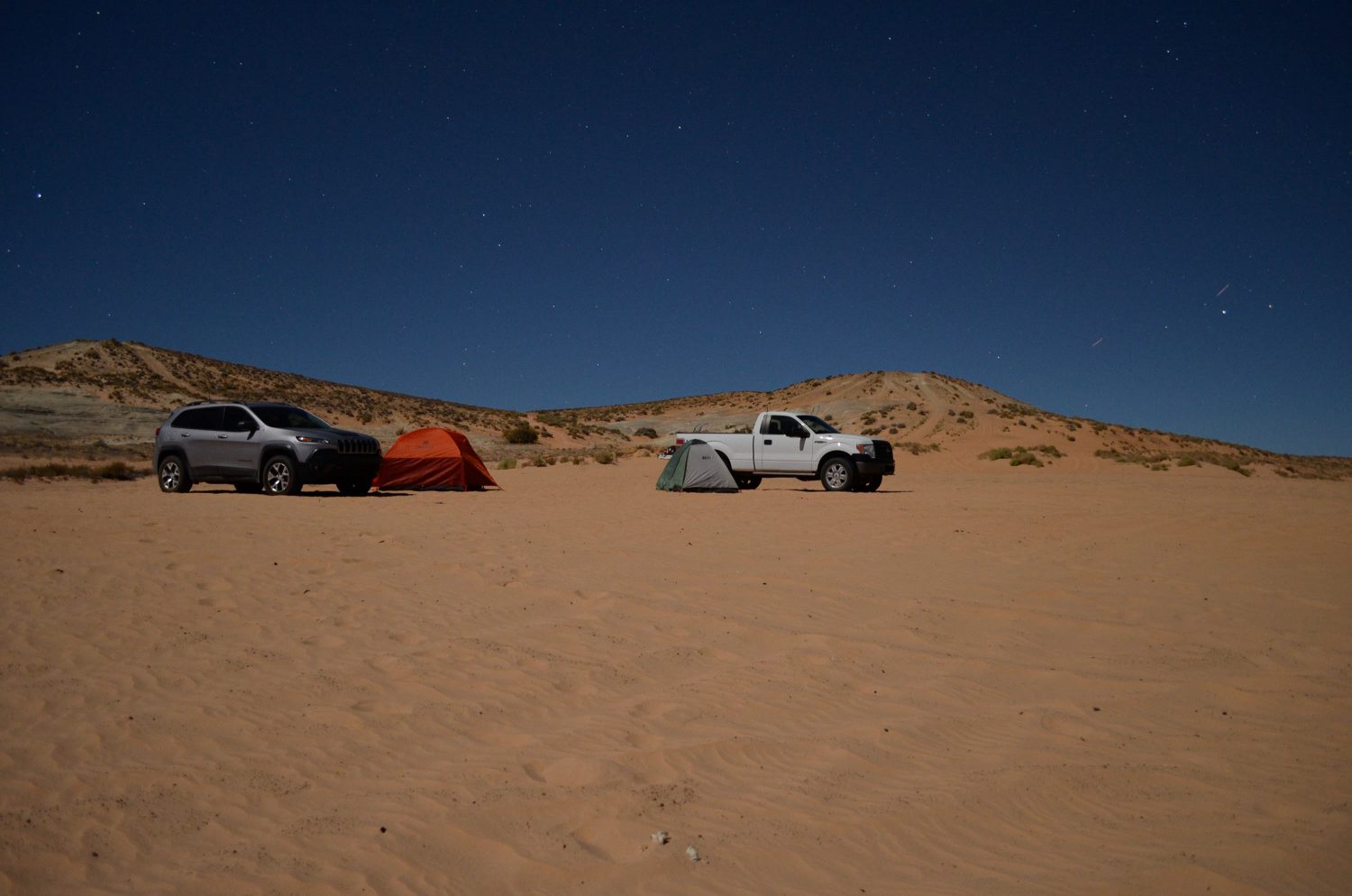 Our itinerary involved a significant amount of driving on Sunday, so we hit the hay and woke up with the sun the next morning. After the obligatory sand-driving photoshoot, we got back out onto the highway and drove up to Big Water, Utah.
