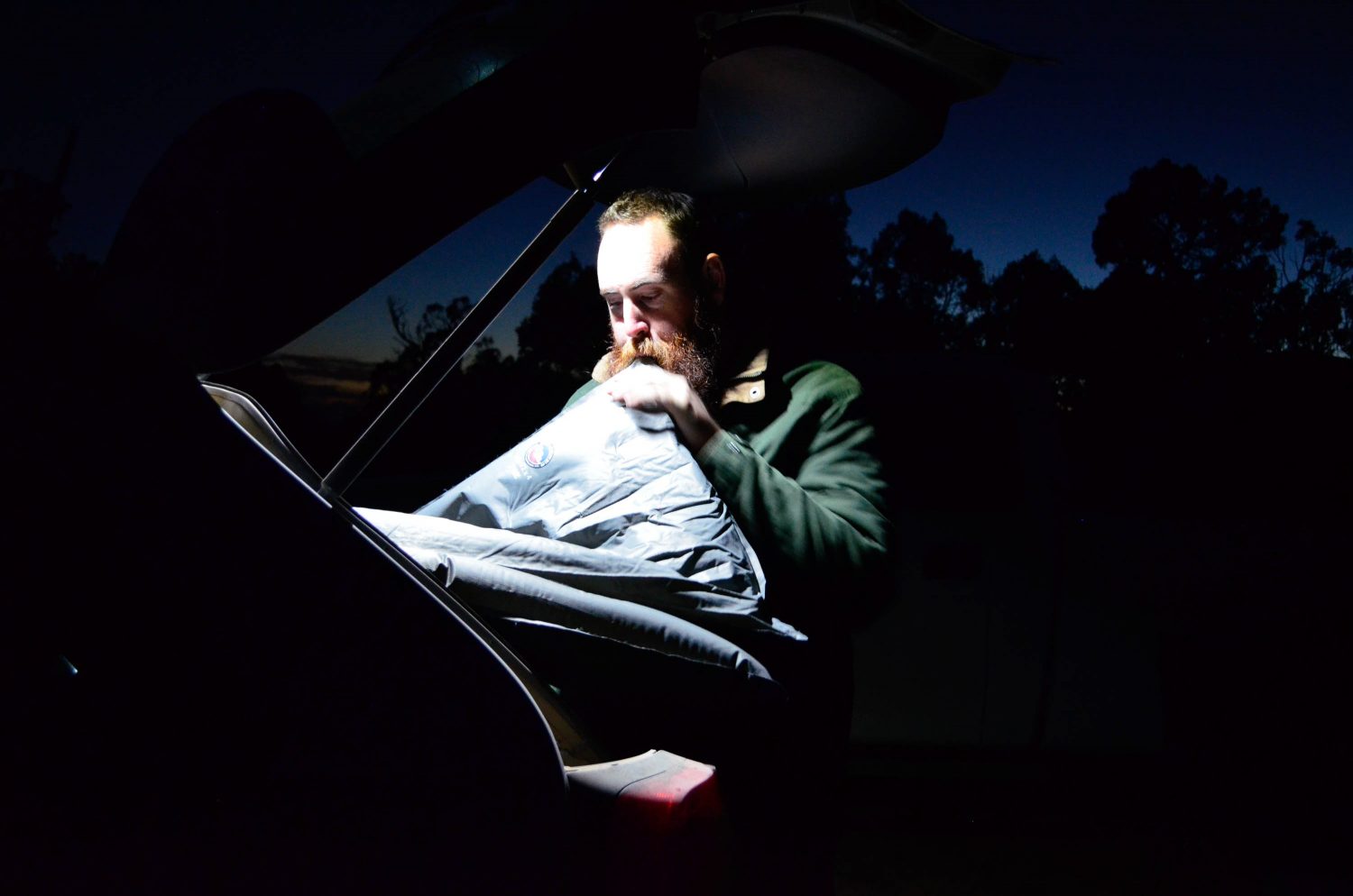The ARB Adventure Light is really handy for camp setup; it easily provided enough light to set up the tent and cook dinner. Bearded man not included.