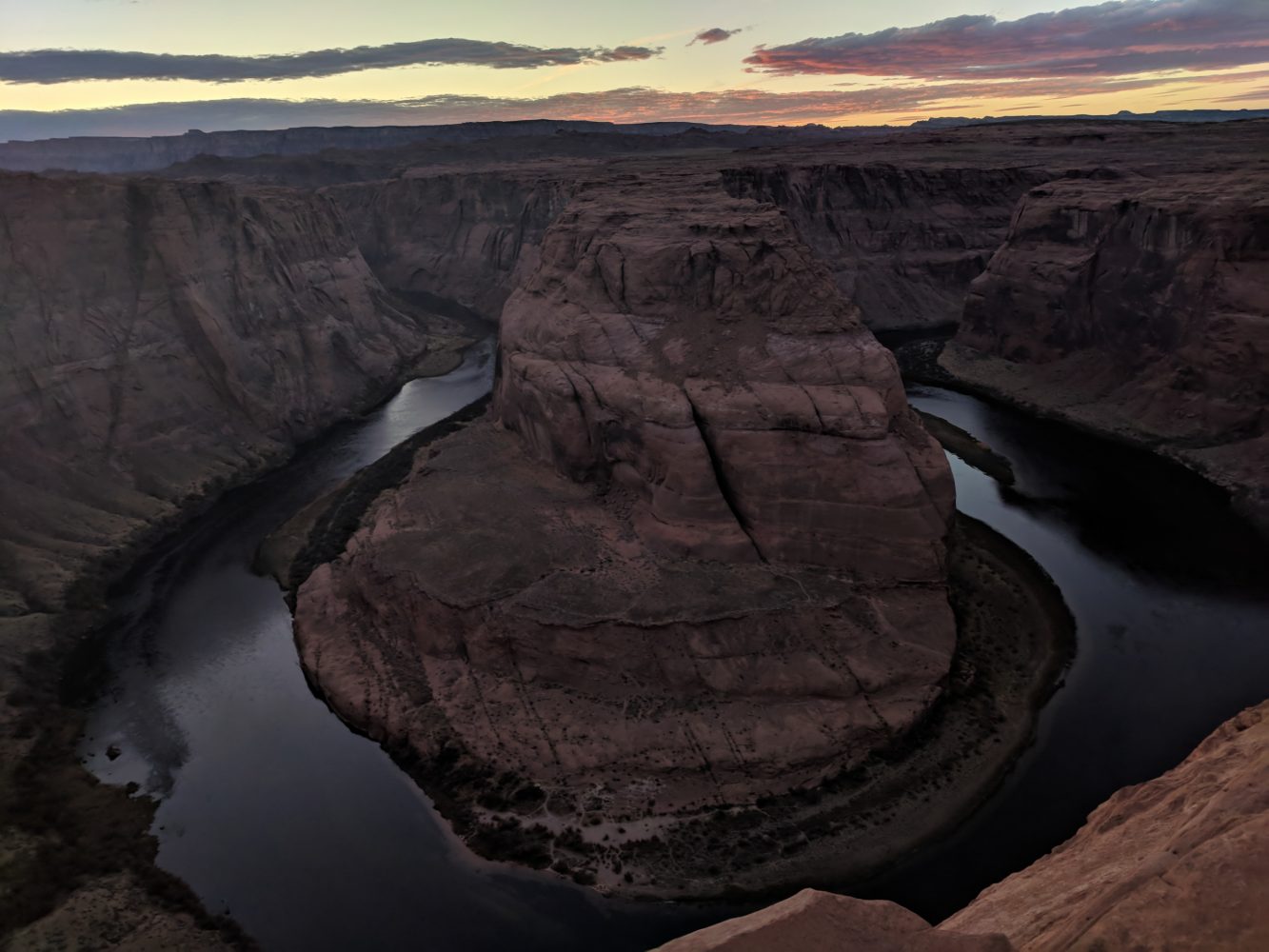 At sunset on Monday, we stopped at Horseshoe Bend just south of Page, Arizona, to get our typical tourist pictures. The walk is just 1.2 miles round trip.