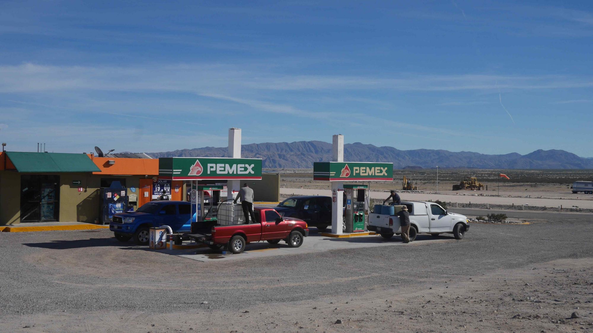 During my reluctant departure I decided to top off my fuel. There are two Pemex stations in Bahia de LA and both of them were unexpectedly out of Diesel fuel. Following a conversation attempt and some gesturing, one of the gas station attendants hopped in my truck and took me to a construction site where I was able to purchase some siphoned diesel at a quite reasonable mark up. I would later find out that gas blockade demonstrations had been prevented fuel trucks from refueling gas stations so almost every gas station northward had run out of gas.