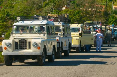 Beaches, swaying palms and a parade of Land Rovers. Doesn’t get much better, does it?