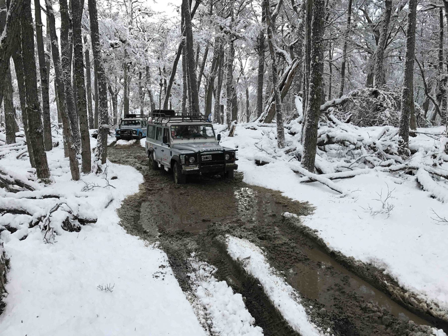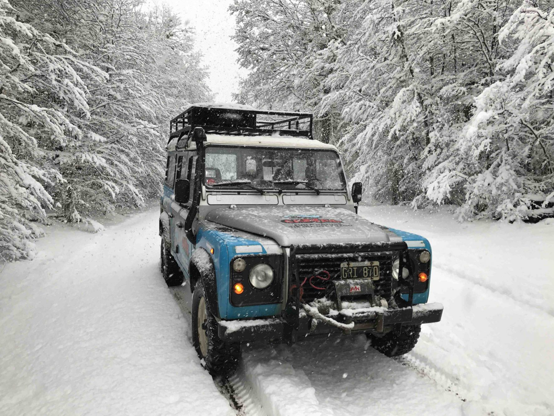 The next morning greeted us with over 53 centimeters or almost 2 feet of new snow—a freak early season snowstorm with weeks still to go before the start of winter. Driving in these conditions can be treacherous for most down here. While not a problem with our studded tires, we did pass a truck overturned on the side of the road, its cargo of brand new mattresses strewn about everywhere. To give you an idea of the intensity of the weather down here, each time our driver Maxi tried to spray the windshield with wiper fluid, the liquid was instantly swept away by the wind, barely hitting one side of the glass, if at all.