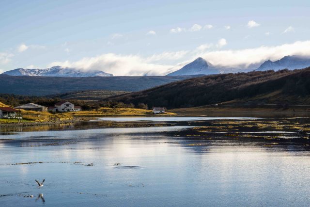 We arrived in the lakes region via ferry, leaving the corrugated metal and brightly painted wood houses of Ushuaia behind to navigate the Beagle Channel eastward toward Harberton. Sea lions, dolphins, cormorants, albatross, and even humpback whales kept us company as we sailed past the Les Eclaireurs lighthouse and Gable Island, stopping to view Magellanic penguins at Isla Yécapasela before disembarking at Estancia Harberton—the historic home of the Bridges family, one of the first European settlers in the area. As our boat pulled up to the dock, the sun slowly set behind the mountains, casting a golden glow over the surrounding grasslands—a sharp contrast to the inky calm waters of the bay. I couldn’t help but wonder if this is how Thomas and Mary Bridges felt when they arrived here for the first time over 100 years ago, arguably after a much longer and more perilous voyage.