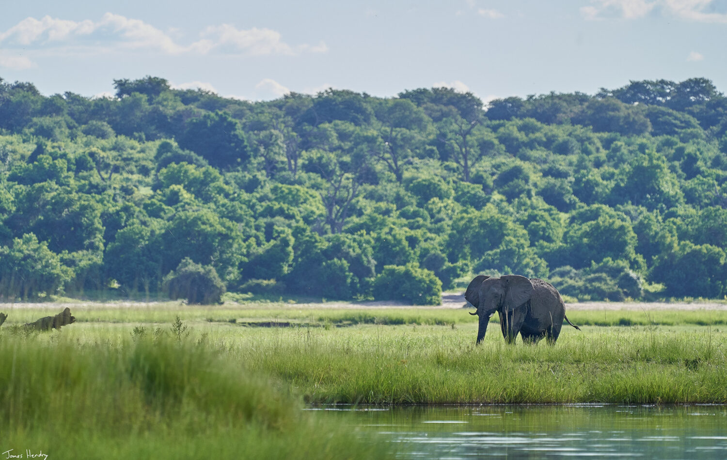 All the action took place on the Boteti River. Birds, kudus, zebras, impalas, and hippos plied their various trades on the banks in the reeds, on the lily pads, and beneath the crystalline surface. On our second evening, we found a viewpoint over the water. As the sun set, two elephant bulls grazed in the sedges and reeds before crossing the river, the water reflecting the end of another stunning day in Botswana.