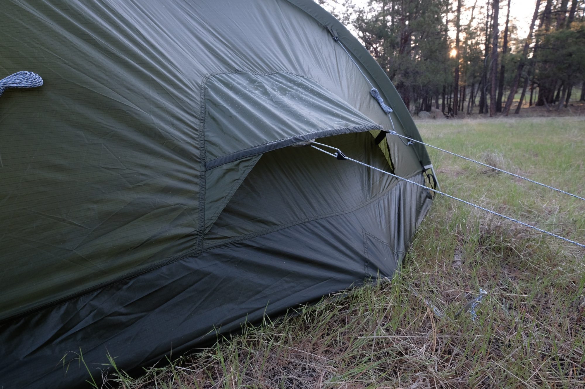 The ability to close off the mesh door panels not only helps warm the tent, it can help defend against blowing desert sand.
