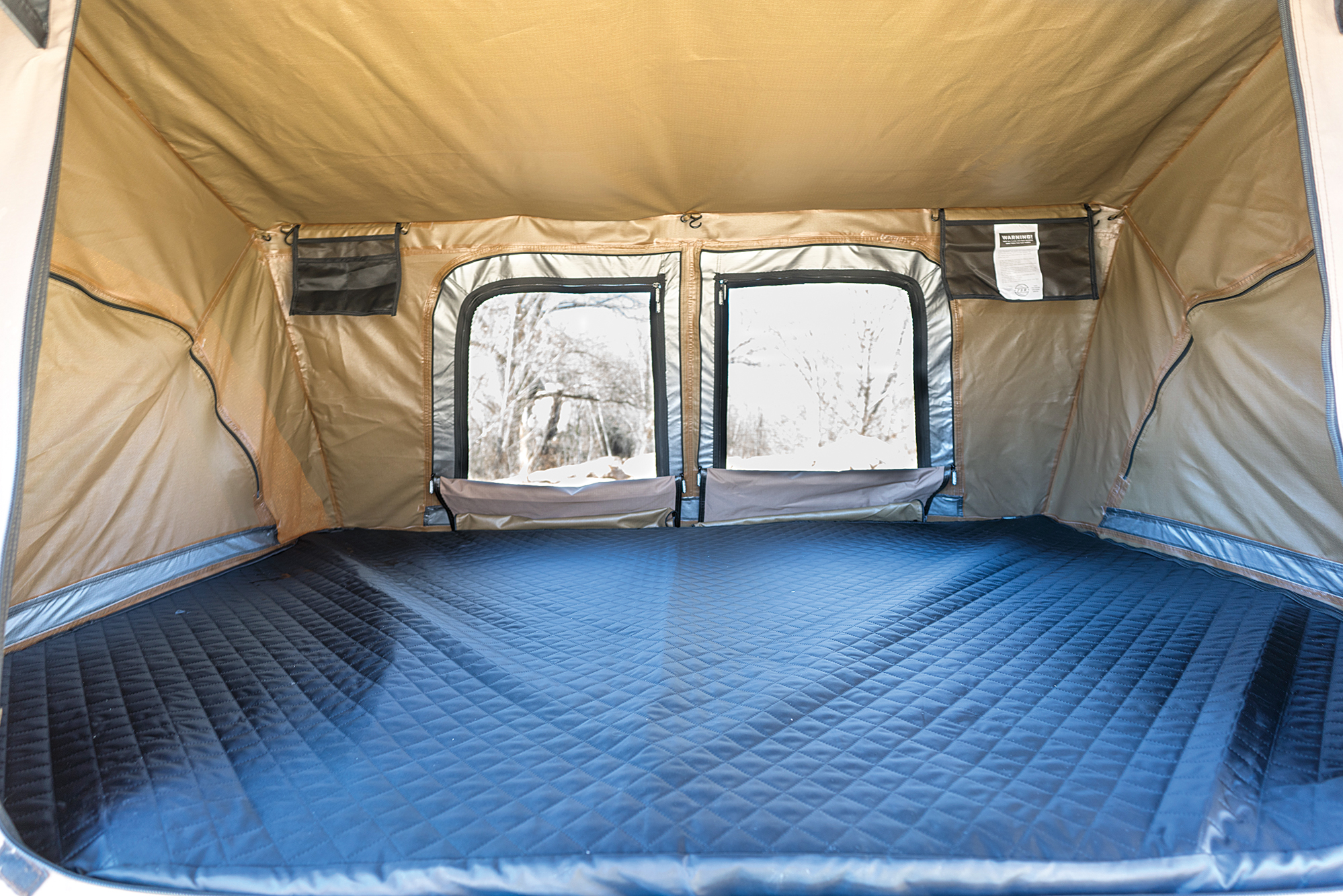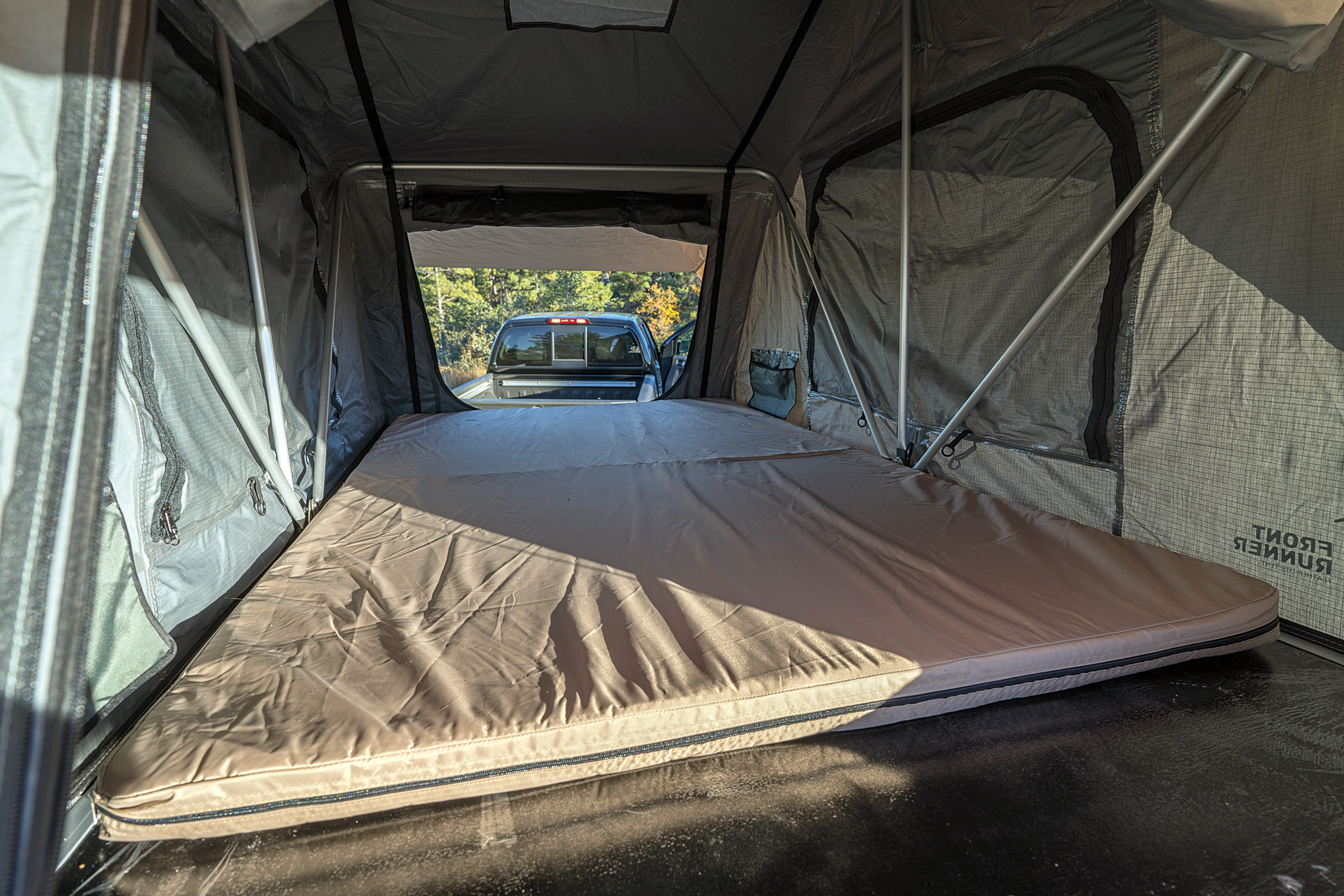 One of the best arguments for buying a roof tent is for a good night’s rest, so test out the mattress at an overland event or read reviews and comments on comfort before buying. I have seen buyers need to install memory foam and even air mattresses to augment the poor support of the stock pad. Look for 60-millimeter minimum thickness and preferably dual density. Even better, some tents are now using a padded floor or underlayment to facilitate comfort. Also, thicker canvas walls reduce light ingress, allowing for the luxurious option of sleeping in well after sunrise.