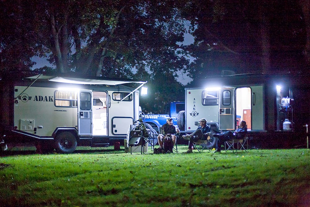You may remember ADAK’s Outpost camper (pictured above left), a spacious travel trailer built to handle rough roads and provide a comfy basecamp in the back country. The downside was it’s shear size, which made it impractical to pull over much more than moderate trails. For those of us seeking an equal level of all-weather comfort in a smaller trail-ready package, ADAK has unveiled the Bivouac.