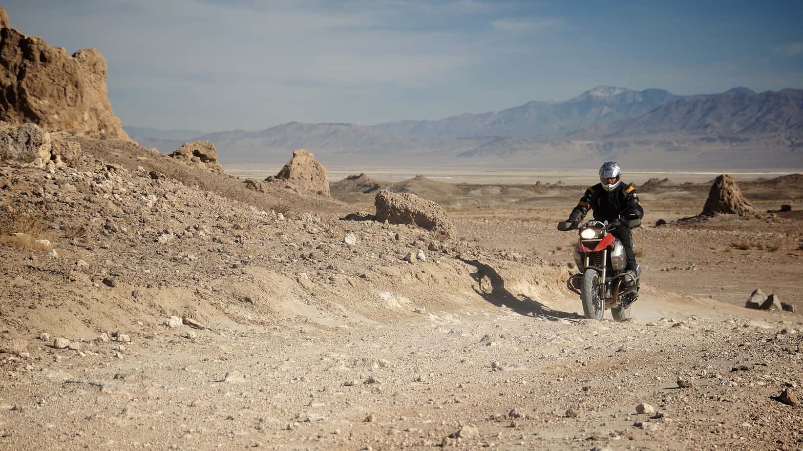 Basecamp Alpha is an add-on program to RawHyde’s Intro to Adventure and Next Step courses, and comprises a 340-mile adventure ride in the deserts of Southern California. The challenge of finding a moderately challenging, yet contiguous off-highway route resulted in quite a bit of gravel road and pavement miles. However, there were several significant highlights for me, principally the ride through the Trona Pinnacles and resulting torture-fest of a sand and whoop road. This road was horrible, but could not have been a better training ground for dealing with sand and loose gravel on a big bike. I was exhausted by the end of it, but felt completely comfortable with the GS moving actively under me.