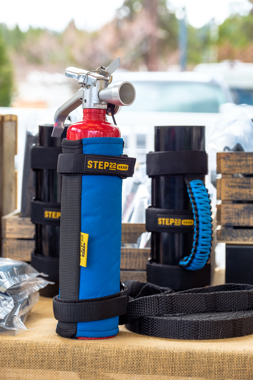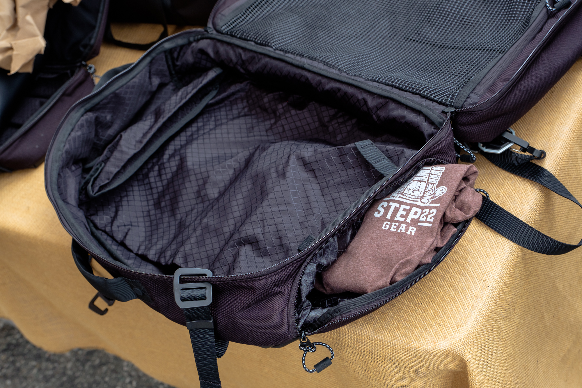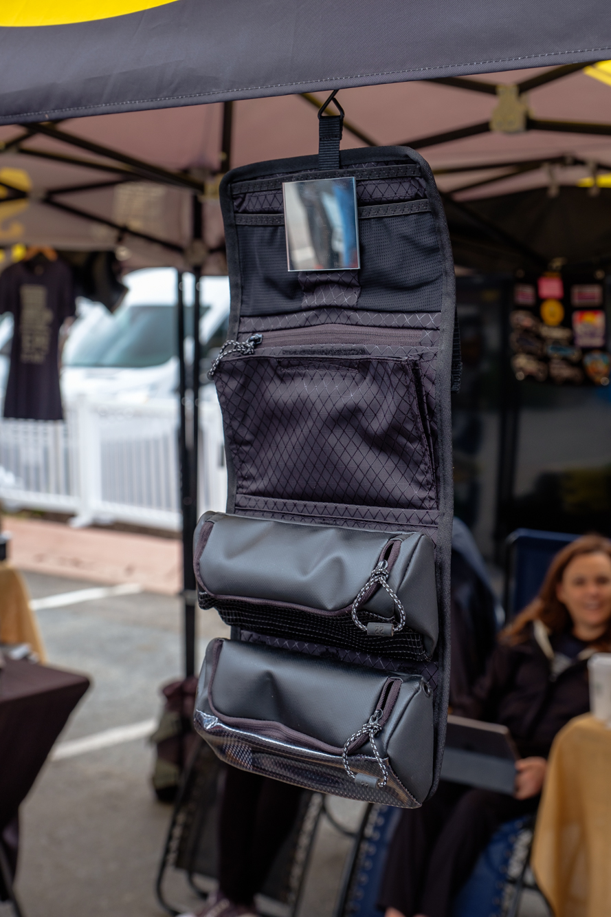 We also spotted a range of nice products from Step 22, like their padded fire extinguisher mount, and a compact Dopp kit with a mirror, loads of organization pockets, and detachable and vented bags for wet items like your toothbrush. They also had a new travel bag with useful additions like a locking pocket for your passport, separate space for dirty clothes, and convertible backpack straps.