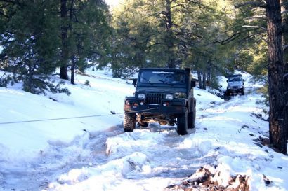 One of the vehicles went into a 100 yard slide before even getting to the trail.