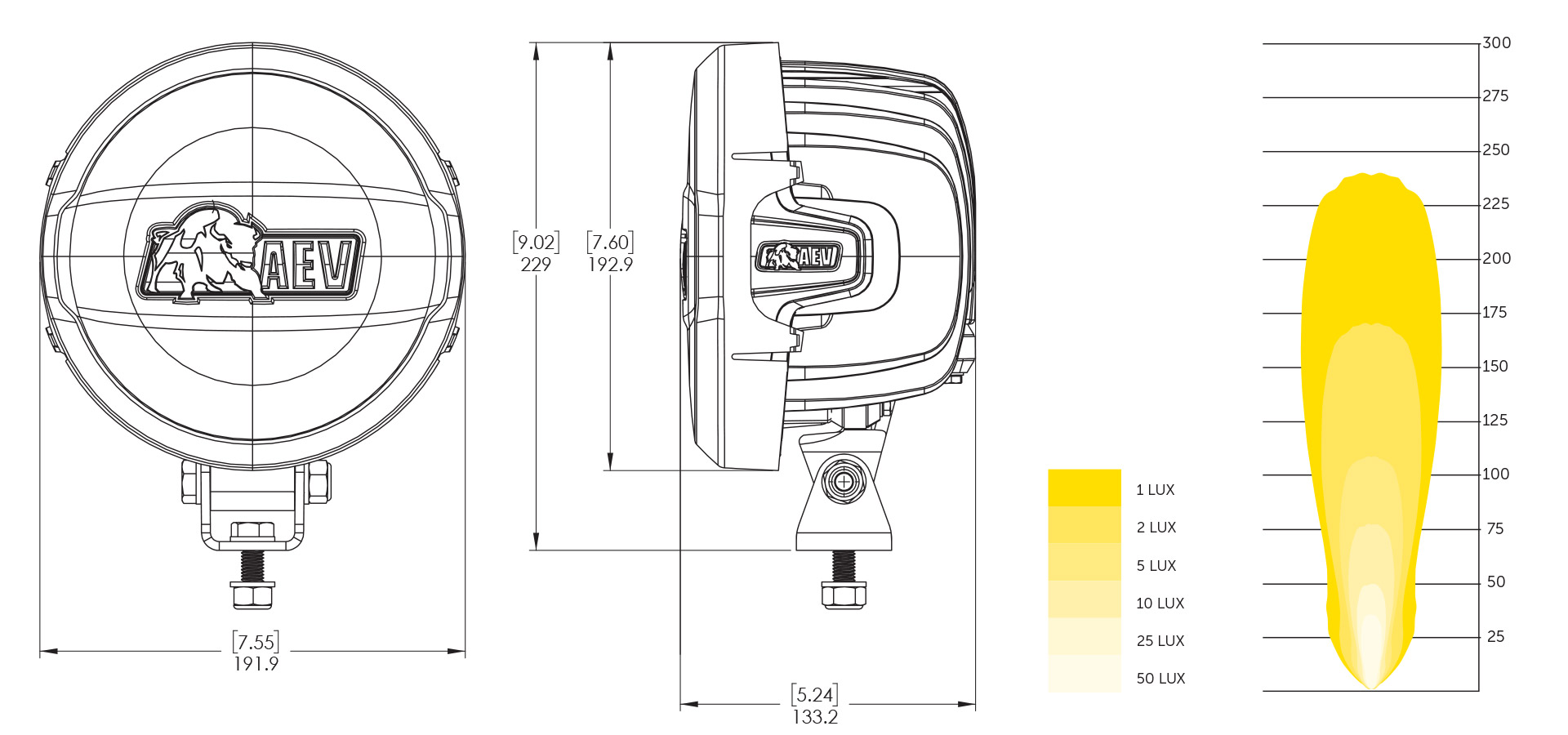 Each package contains two AEV 7000 Series lights, two universal vibration-reducing mounting brackets, two solid black AEV logoed light covers, and an AEV wiring harness. They’re assembled here in the USA, and carry a 5-year warranty on electrical components, and a lifetime warranty on the housing.