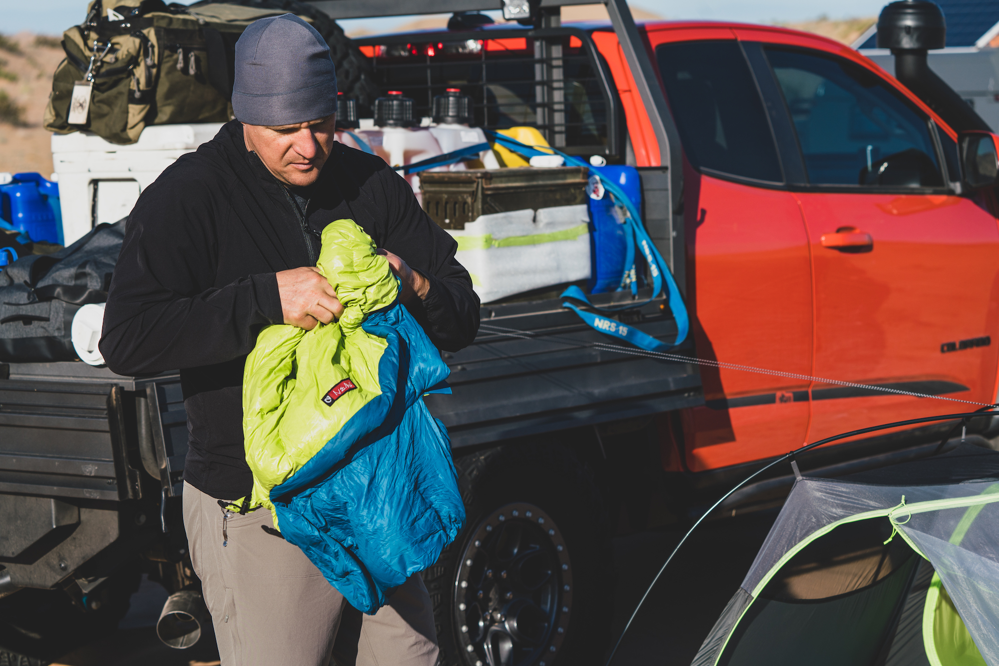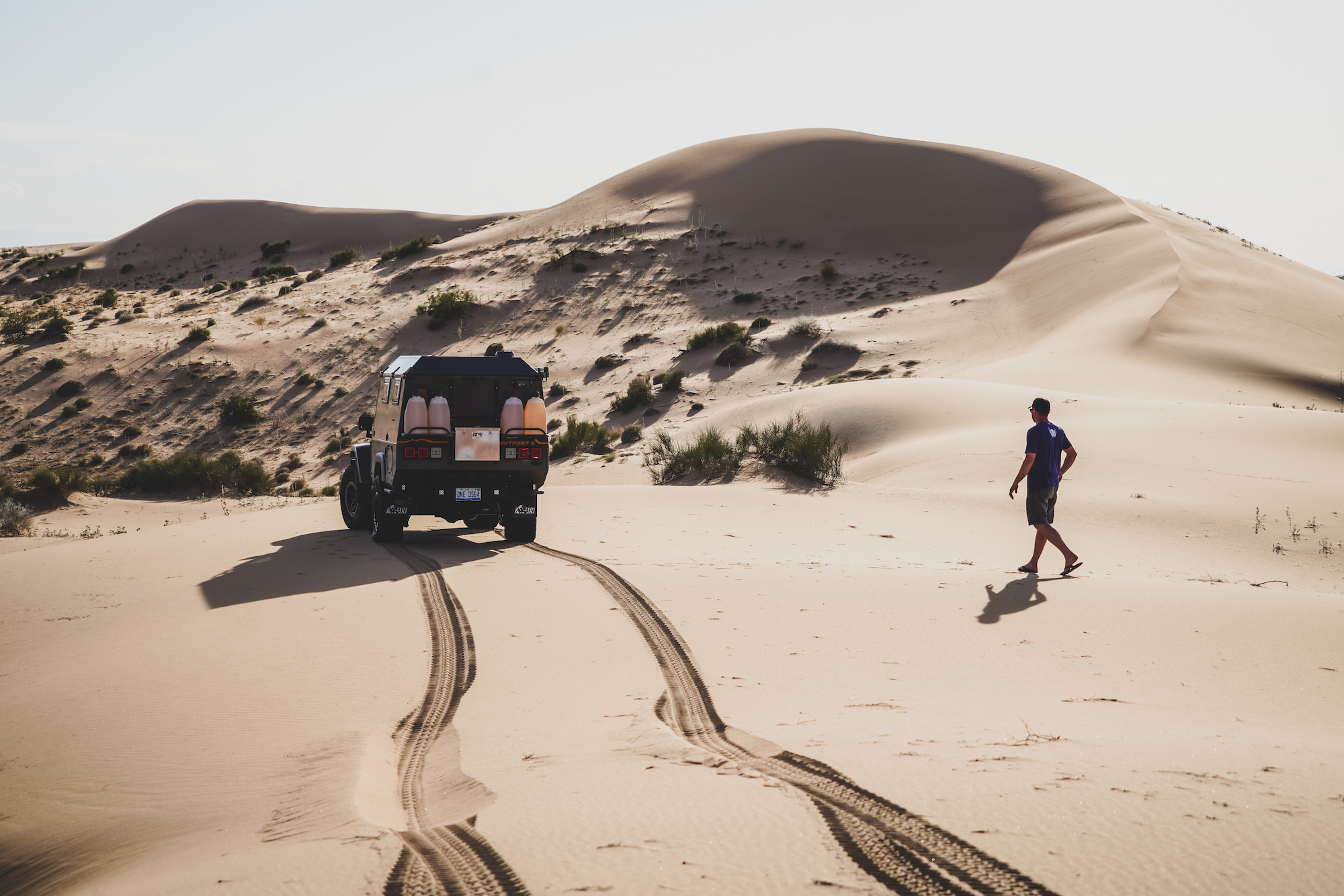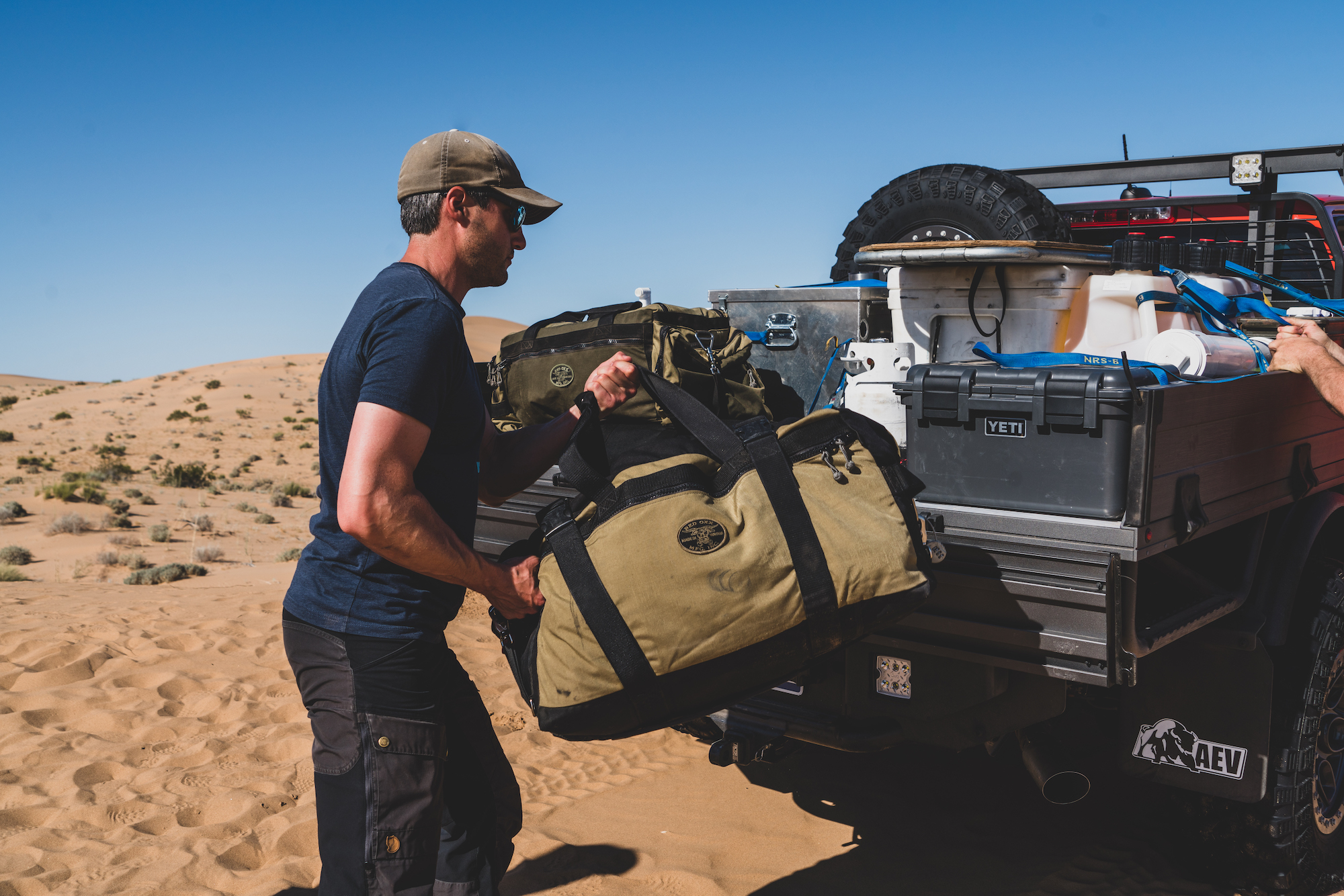 Each of these vehicles was particularly well suited to the challenges of the sand, and the modifications were either premium OEM offerings (like the suspension on the Bison), or thoroughly engineered aftermarket enhancements from American Expedition Vehicles (AEV). It was also impressive to travel such technical terrain with a flatbed pickup loaded with over 100 gallons of extra fuel and water, along with a massive Yeti cooler and a pile of personal effects. The perfectly flat load floor was essentially a square and allowed for quick access to everything on the platform. Tie-downs were everywhere, and the sides would fold down, making the entire process even easier. The downside to this type of configuration is reduced security, but we were so remote that it didn’t matter. Overall, the Bison was a workhorse and sipped fuel with the small-displacement turbo-diesel.