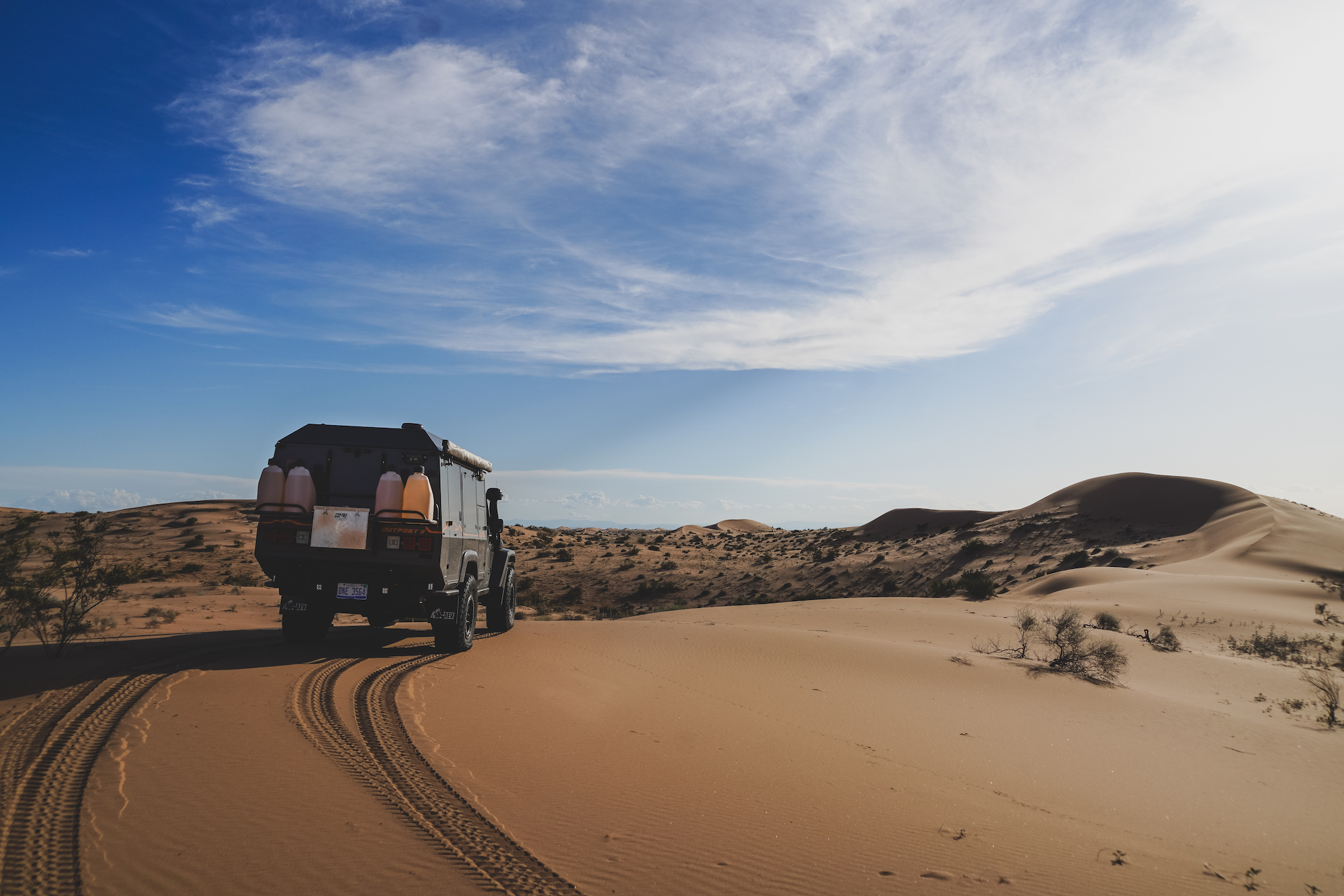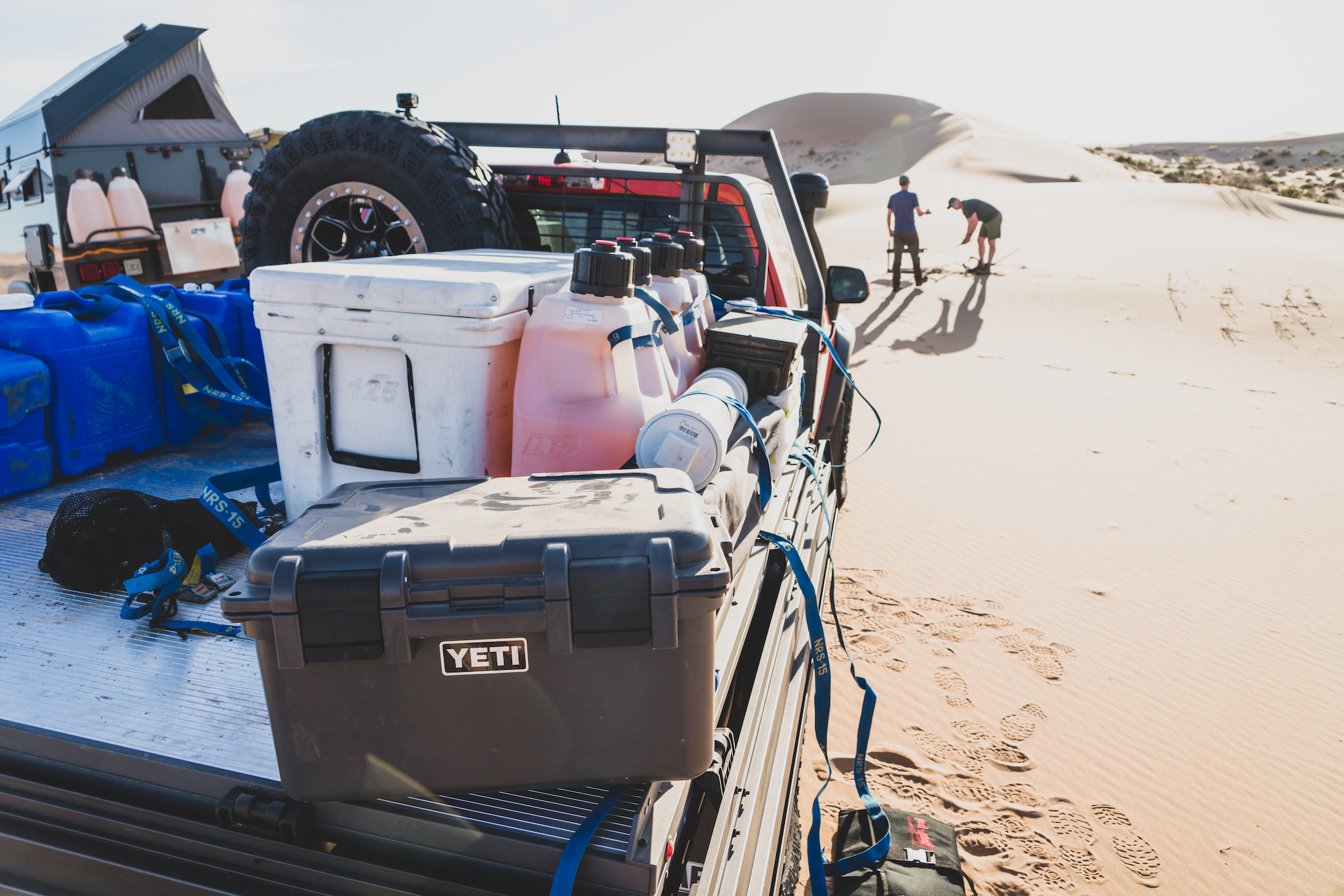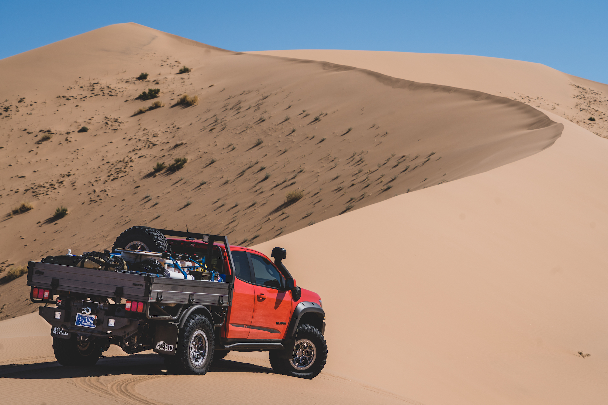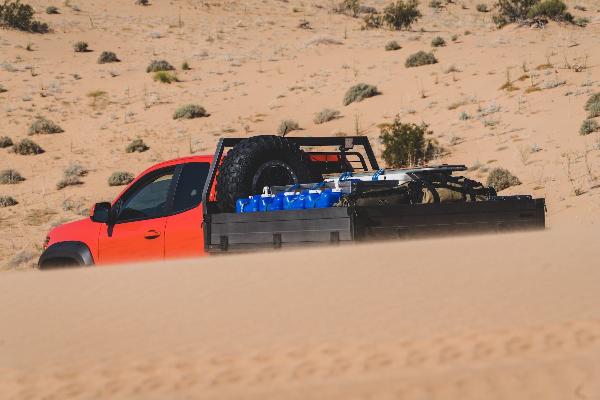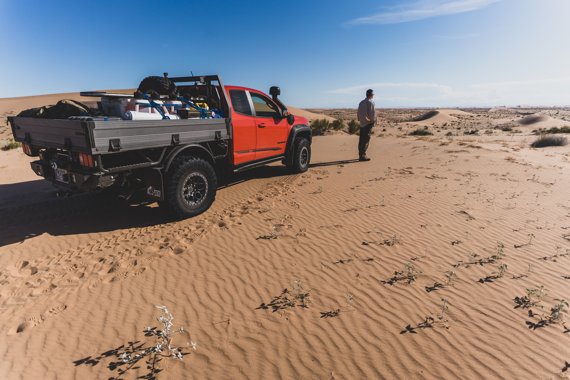 Each of these vehicles was particularly well suited to the challenges of the sand, and the modifications were either premium OEM offerings (like the suspension on the Bison), or thoroughly engineered aftermarket enhancements from American Expedition Vehicles (AEV). It was also impressive to travel such technical terrain with a flatbed pickup loaded with over 100 gallons of extra fuel and water, along with a massive Yeti cooler and a pile of personal effects. The perfectly flat load floor was essentially a square and allowed for quick access to everything on the platform. Tie-downs were everywhere, and the sides would fold down, making the entire process even easier. The downside to this type of configuration is reduced security, but we were so remote that it didn’t matter. Overall, the Bison was a workhorse and sipped fuel with the small-displacement turbo-diesel.