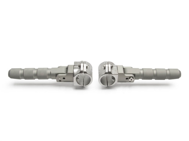 - CNC machined billet aluminum pegs with deep knurling for traction