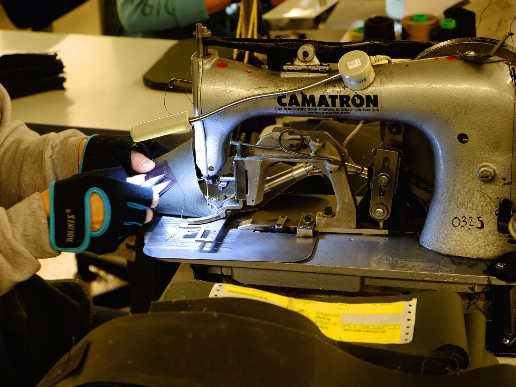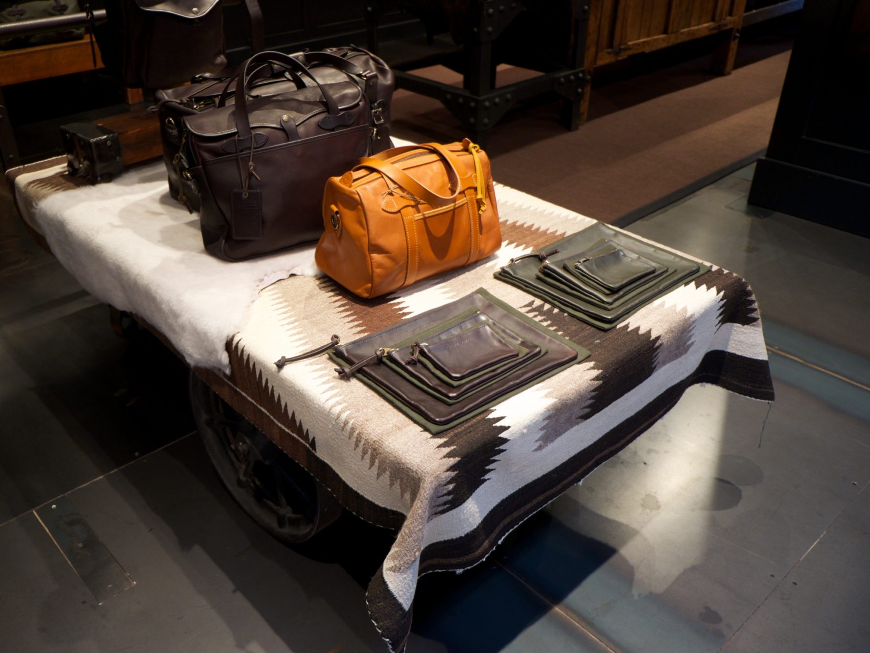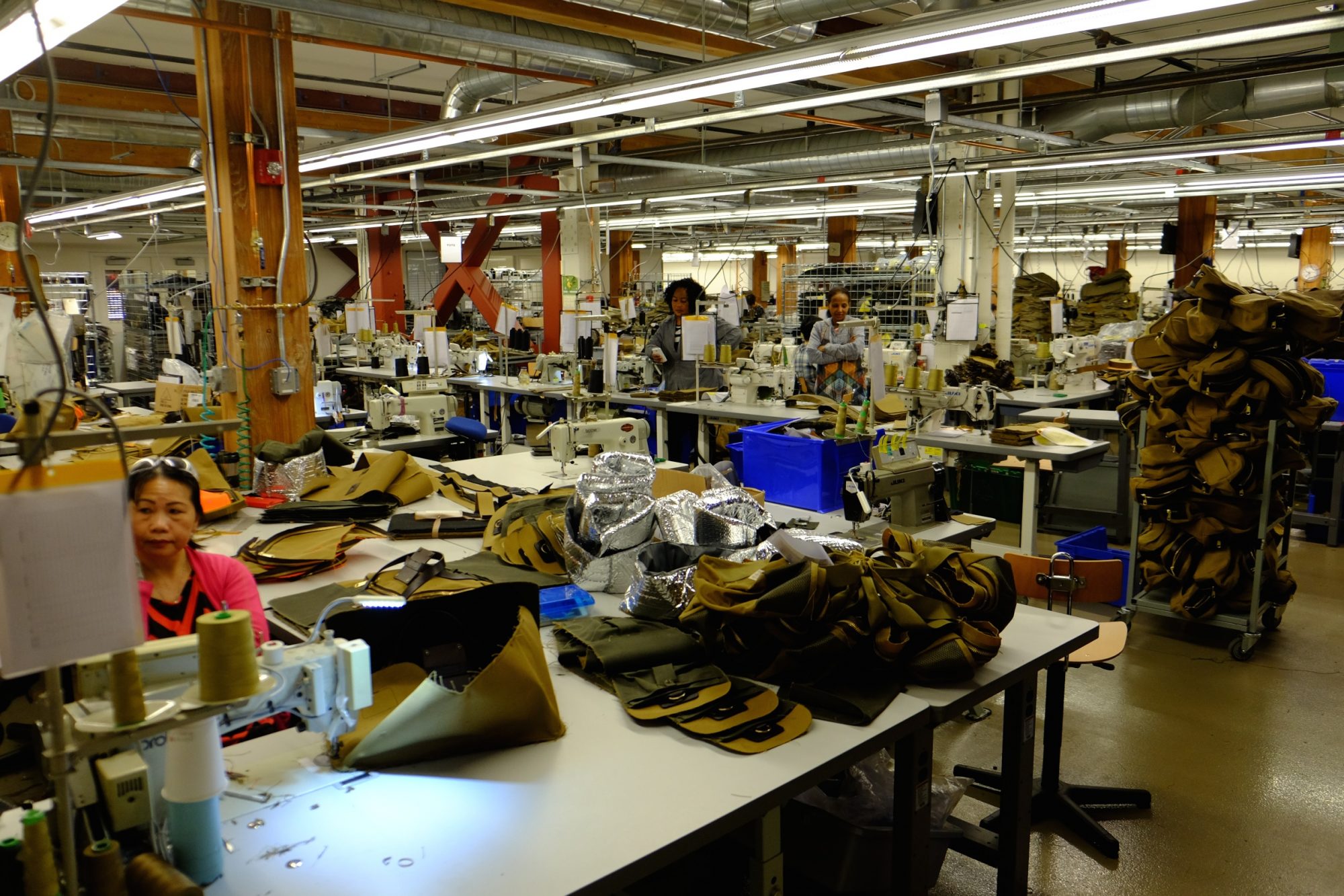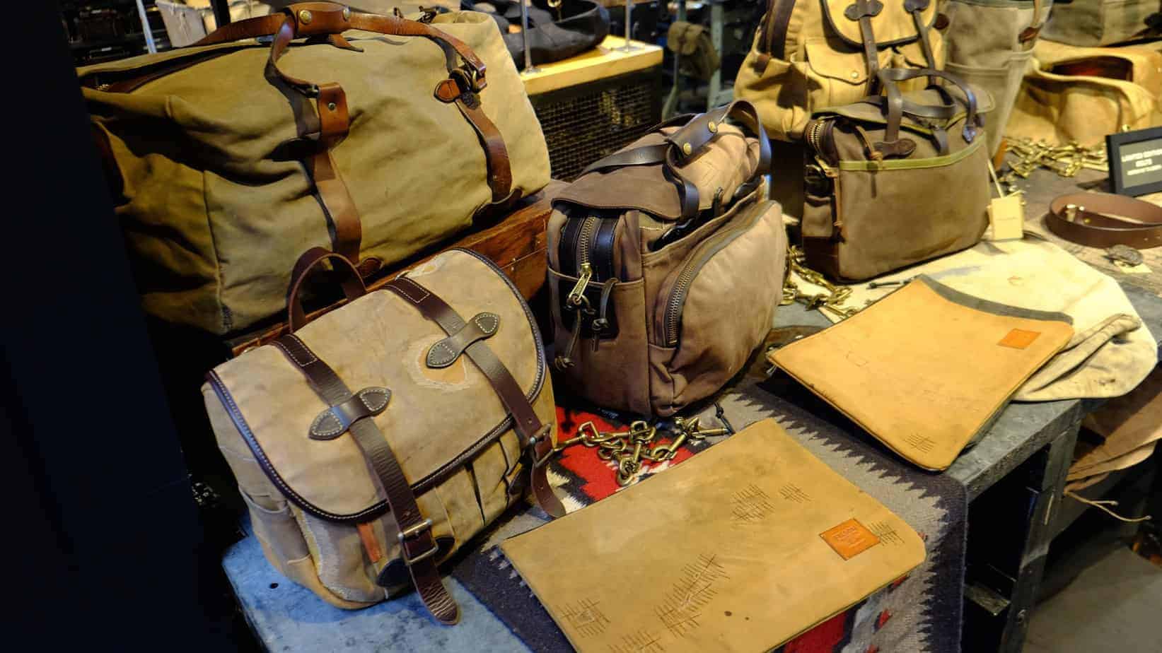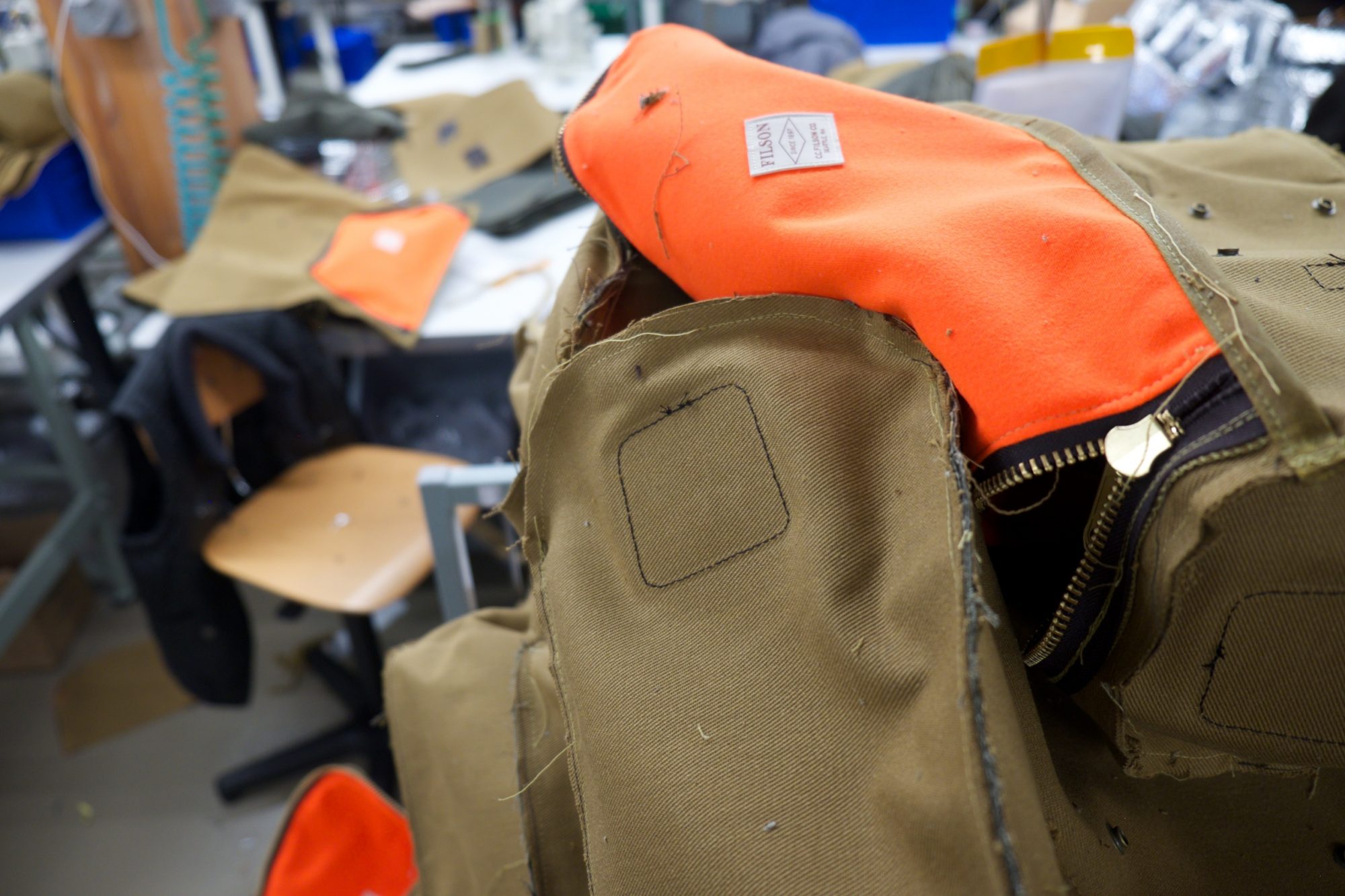 On the first floor of the new Filson building sits a sprawling manufacturing complex, filled with thumping sewing machines and dozens of skilled sewers swiftly but carefully joining stiff canvas to richly tanned leathers. At the back of the room designers tugged and pulled at samples and plotted out the creations for the coming season. The entire facility is abuzz with activity proving the Filson brand still does a brisk business.