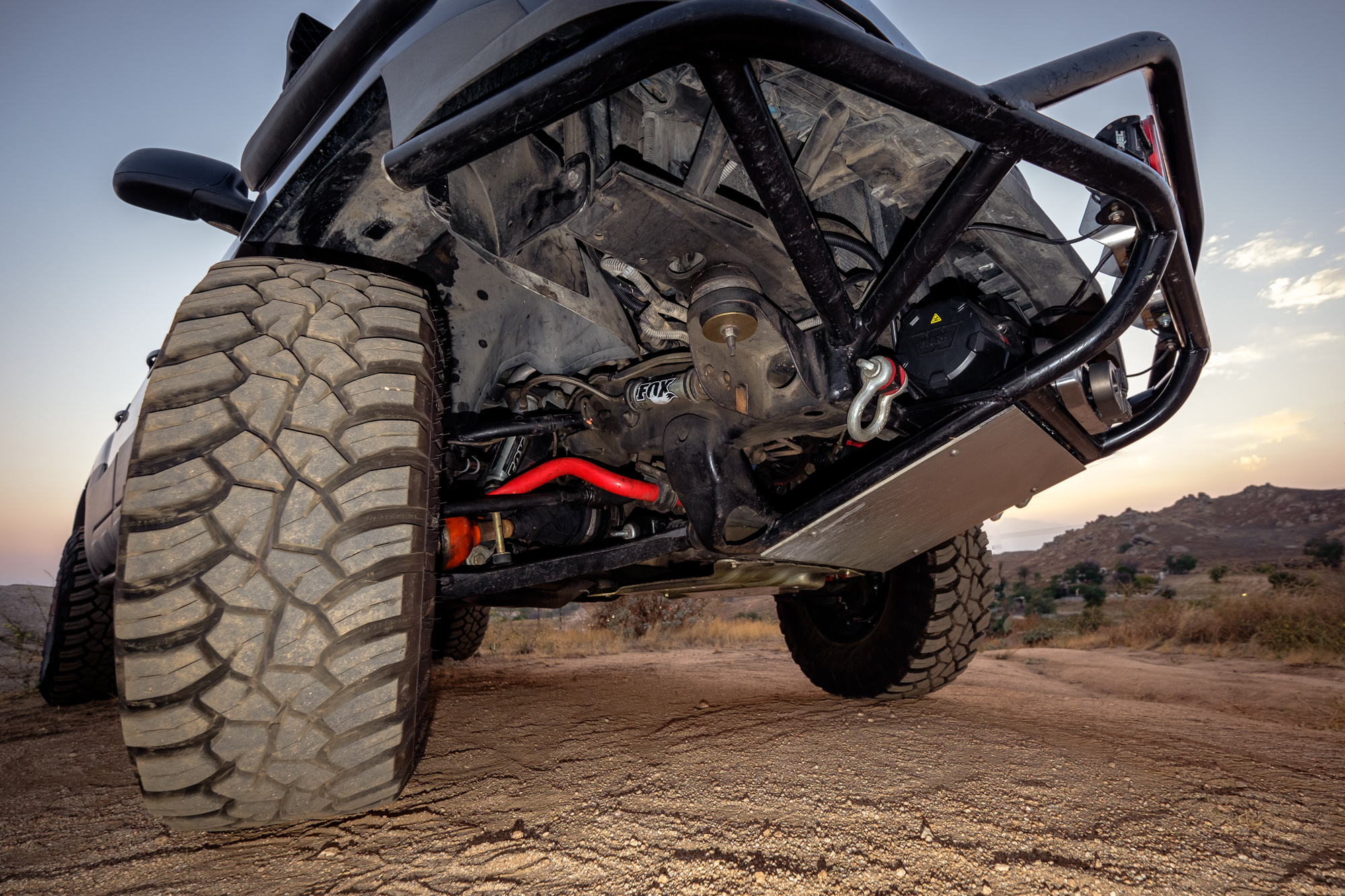 It packs 4.88 G2 gears for turning the larger tires and restoring fuel economy, and new G2 axles and bearings to support the additional mass of the truck. The GM 10 bolt steel trussed rear end is shielded by an ARB differential cover, and as you’d expect with that, sports an ARB air locker inside for tackling more challenging obstacles. In addition to the 4.88 gears, the front end also has some stronger RCV Performance aftermarket axles to match the heavy-duty steering components.