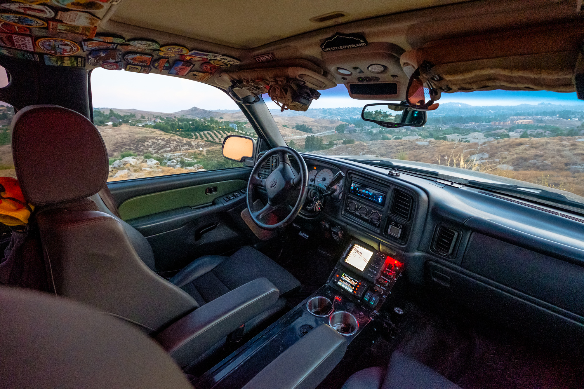 So now we finally get to all the overland goodies. After all, if you’re going to be building a truck for travel, you want it to be comfortable, right? For Bill, that started with back and body support in a set of Scheel-Mann Vario F Seats with top and bottom heaters. He paired these to Corbeau seat belts, and a custom fabbed center control console by BB Fabworx to clear the armrest of the Scheel-Manns. In that console, he integrated everything for communications and navigation, including a Yaesu FTM400-XDR, Garmin InReach, a Lowrance GPS and mount for his iPhone.