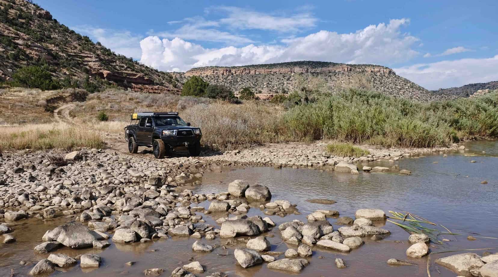 That fall, we return to Mills Canyon in the truck, on the way to Colorado but with time built in for a more leisurely stop. Before we head to camp that afternoon, we find we’re able to cross the river on a low-water bridge. On the other side we spy a rocky trail that looks suspiciously like an old road and begin to follow it in the truck. It winds back and forth, twisting up the canyon wall. “This must be the old stagecoach road,” I tell Bill.