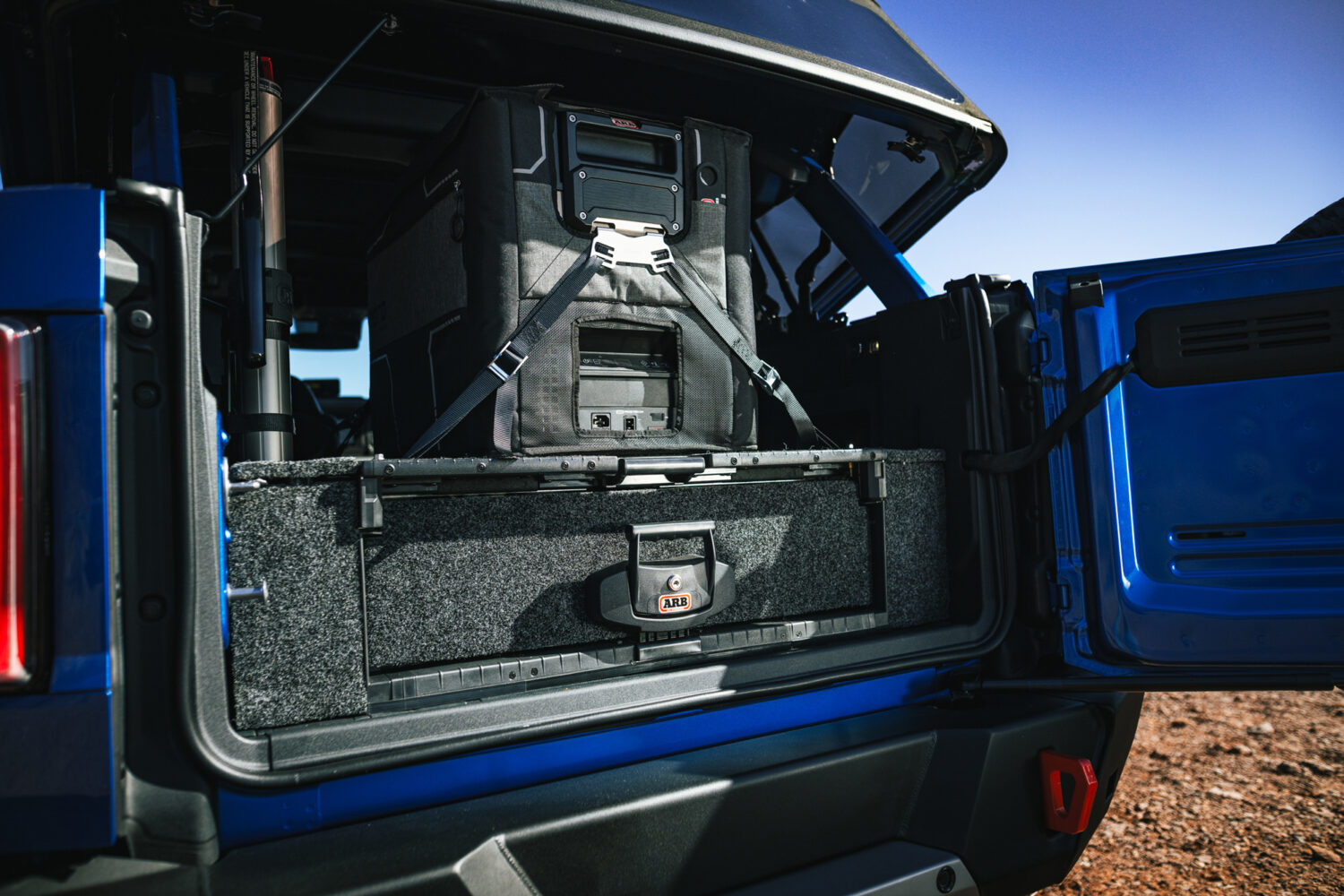 Everything necessary for this integration, from chassis structural design, roof-load-carrying capacity, suspension travel, snorkel air intake, air systems routing, and fridge/freezer wiring was designed with Ford’s support, utilizing CAD, vehicles, and the design team that brought the new Bronco to life.