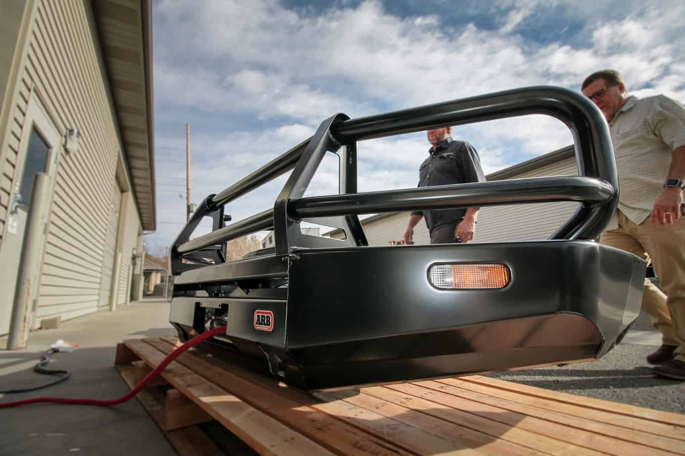 Once their development team gives the go ahead for production, the design is uploaded to ARB’s manufacturing facility where a system of advanced fabrication equipment is waiting. The process begins with an automated laser which makes cuts as small as .008” in the steel. This prepares the sheets to be folded up to five times on a CNC (Computer Numerically Controlled) machine for additional strength during impacts. Afterwards, the components are moved to the welding stage. Here a series of robotic welders and grinders take care of the repetitive processes, while experienced employees tackle the specialized ones. This ensures a polished and visually appealing look every time, with an extra layer of human quality control.